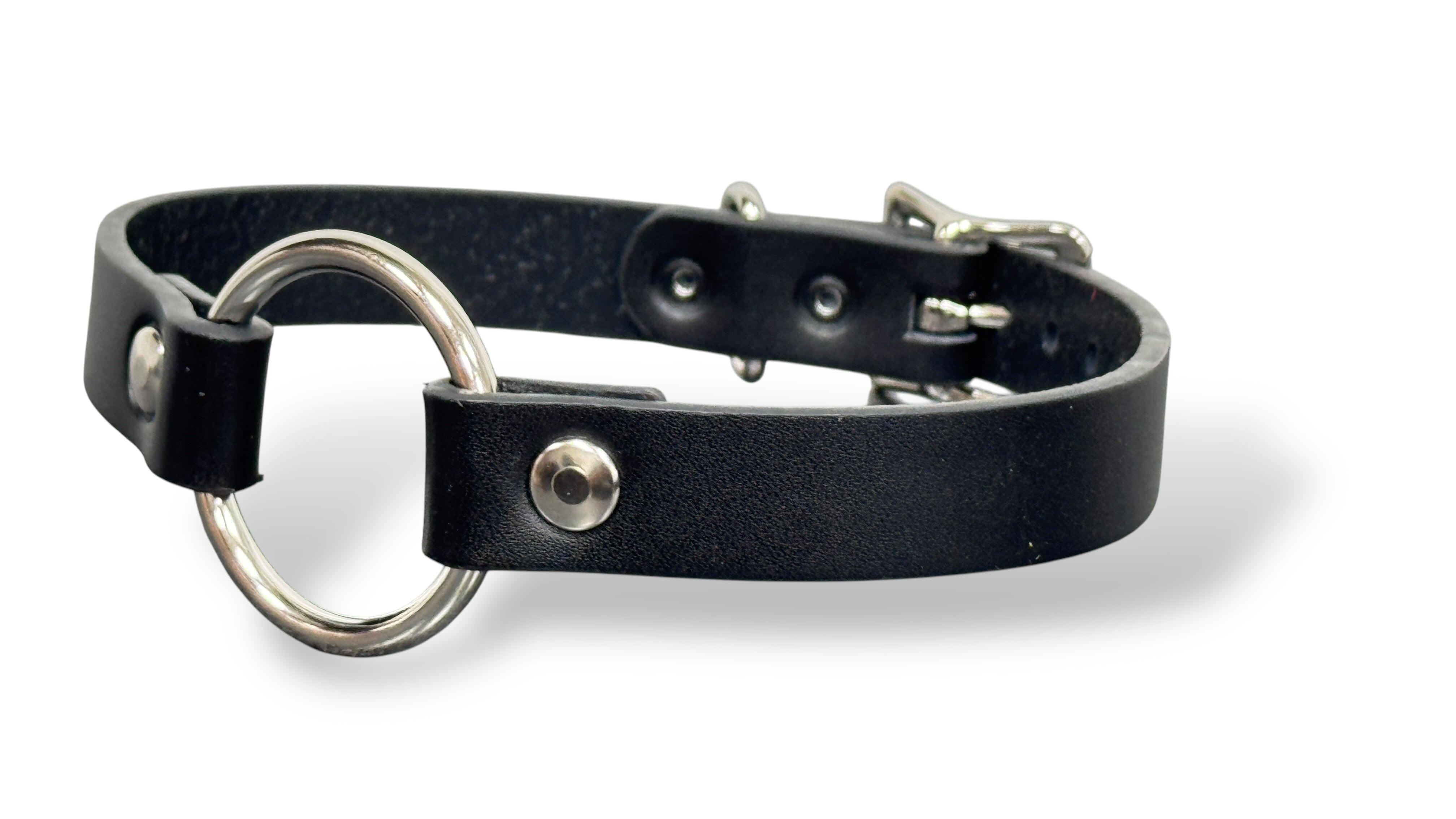 FCK226 MIDDLE O RING (1 1/4") BLACK 3/4" LEATHER BUCKLE CHOKER