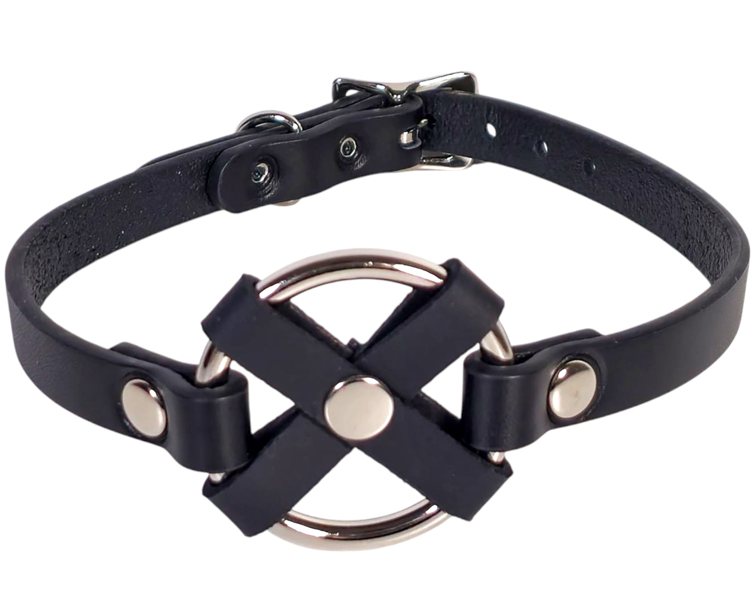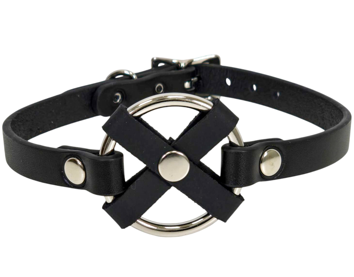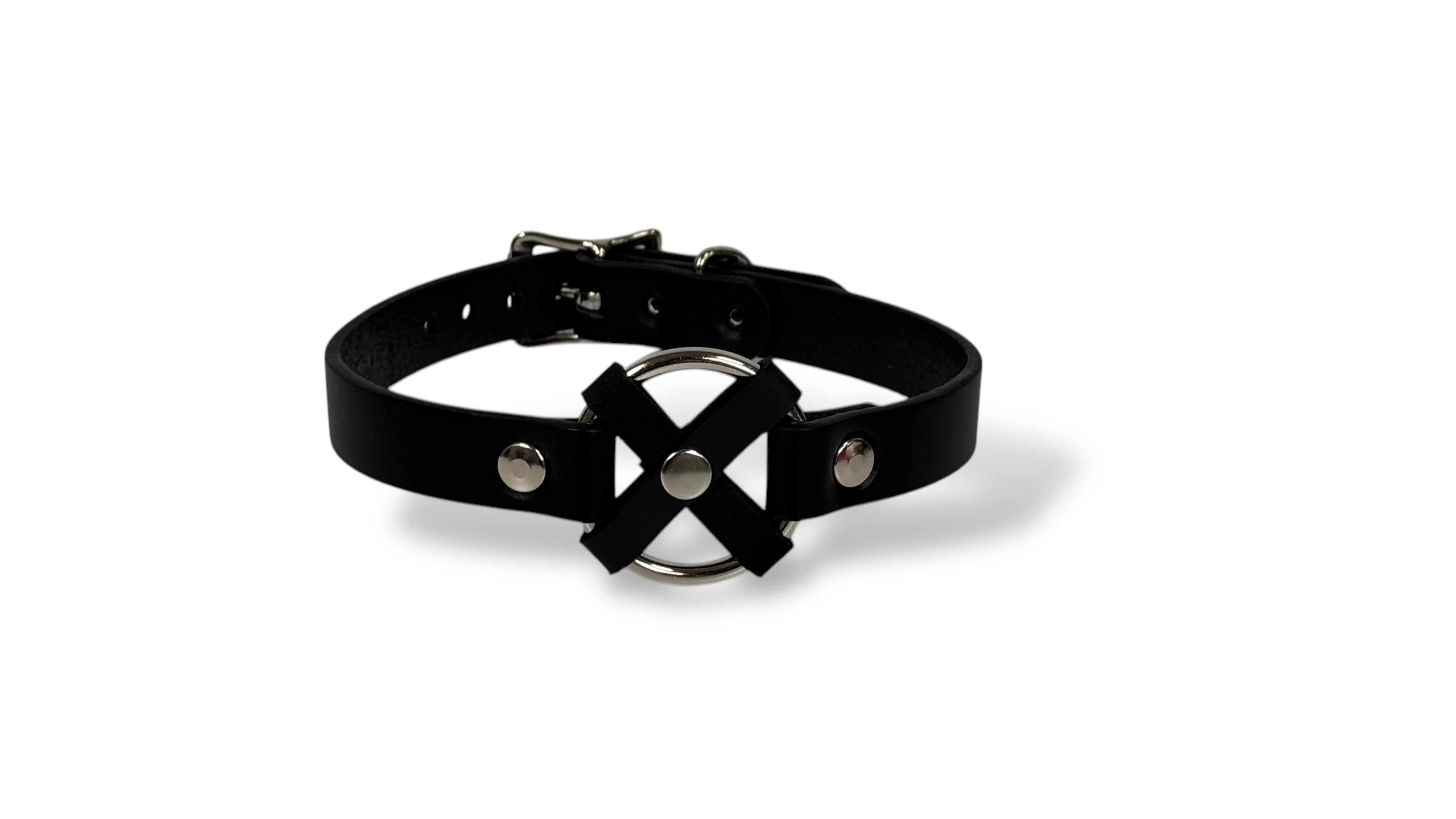 FCK675 MIDDLE O RING CROSS BLACK 1/2" LEATHER BUCKLE CHOKER