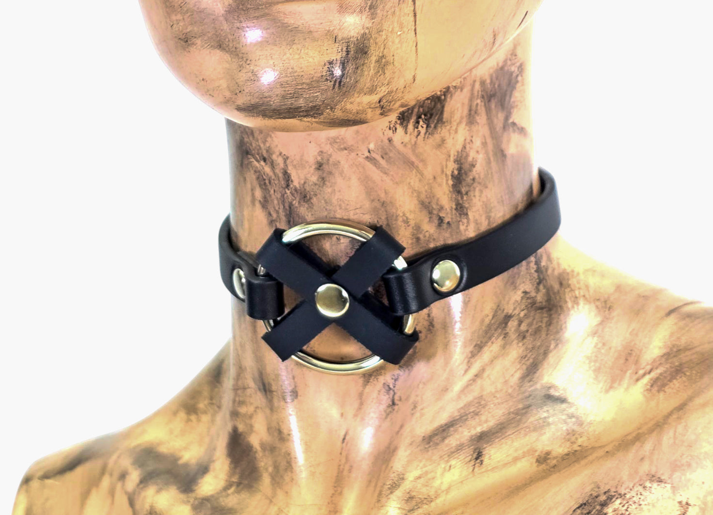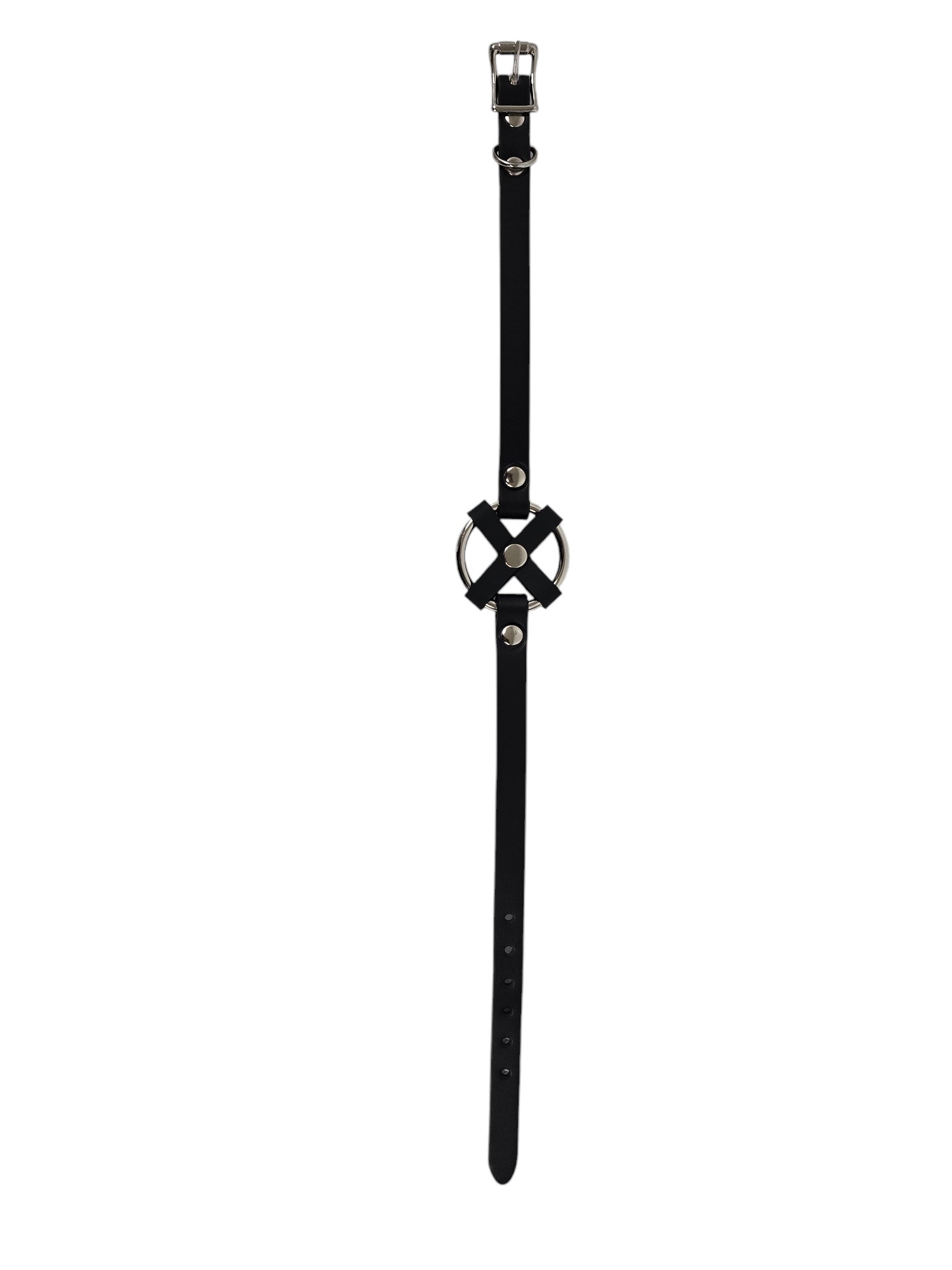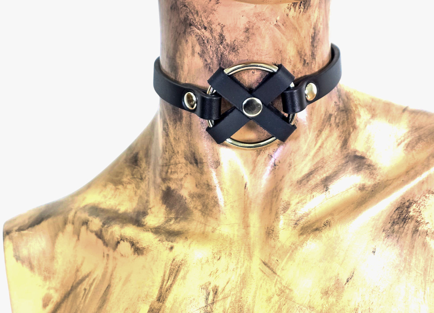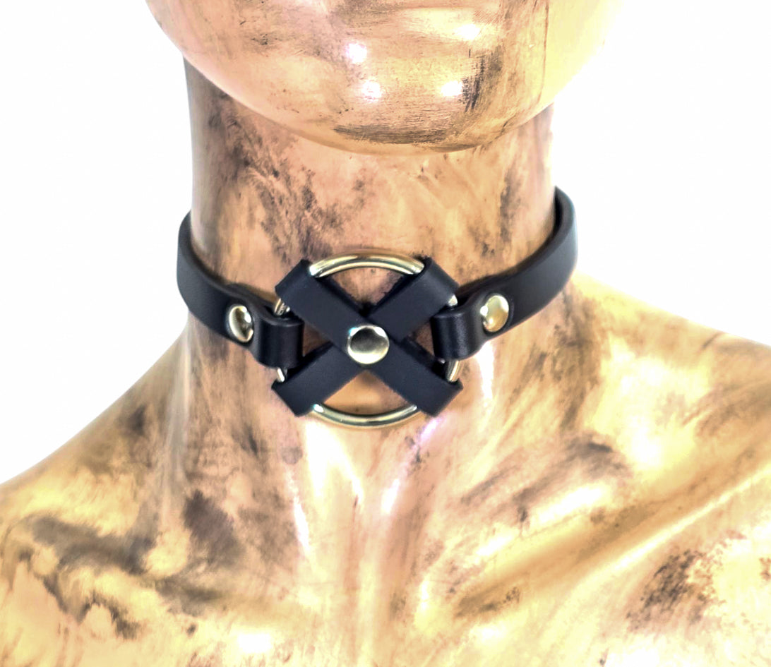 FCK675 MIDDLE O RING CROSS BLACK 1/2" LEATHER BUCKLE CHOKER