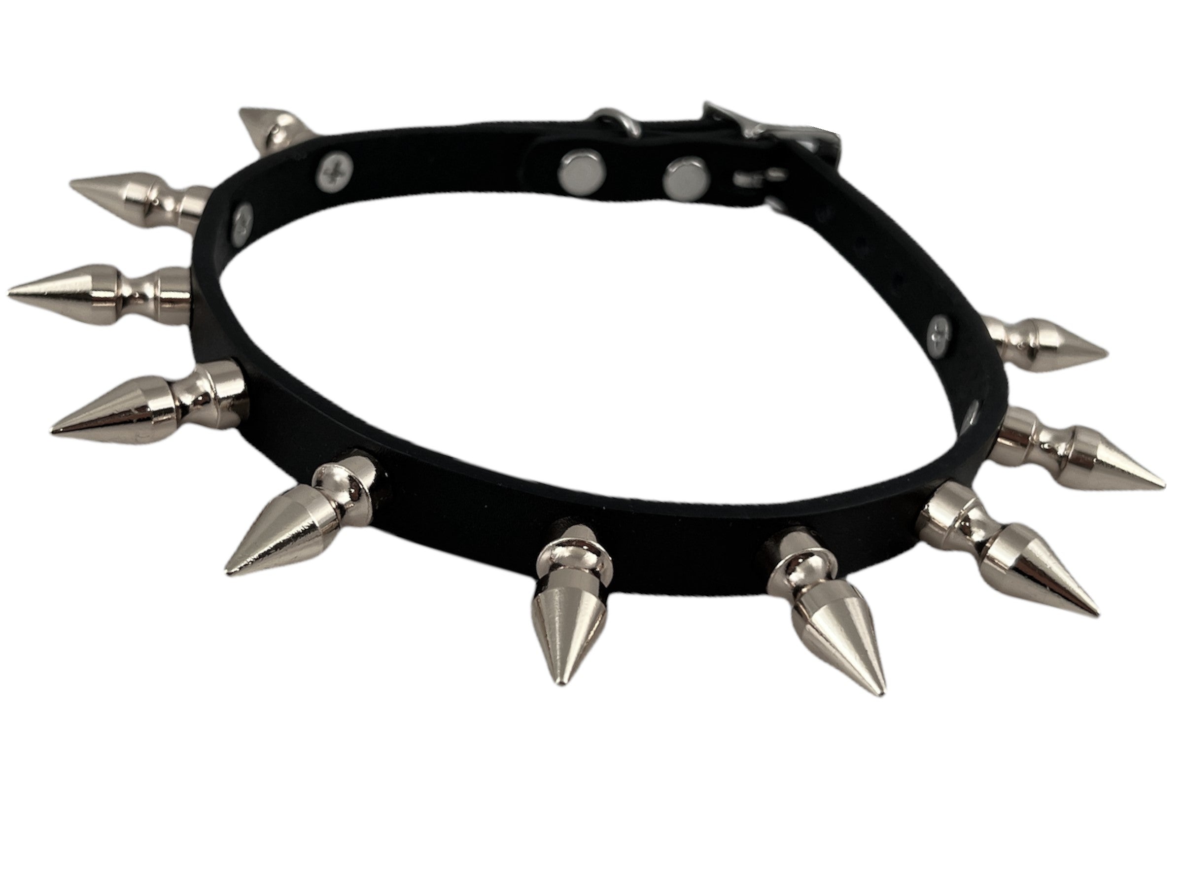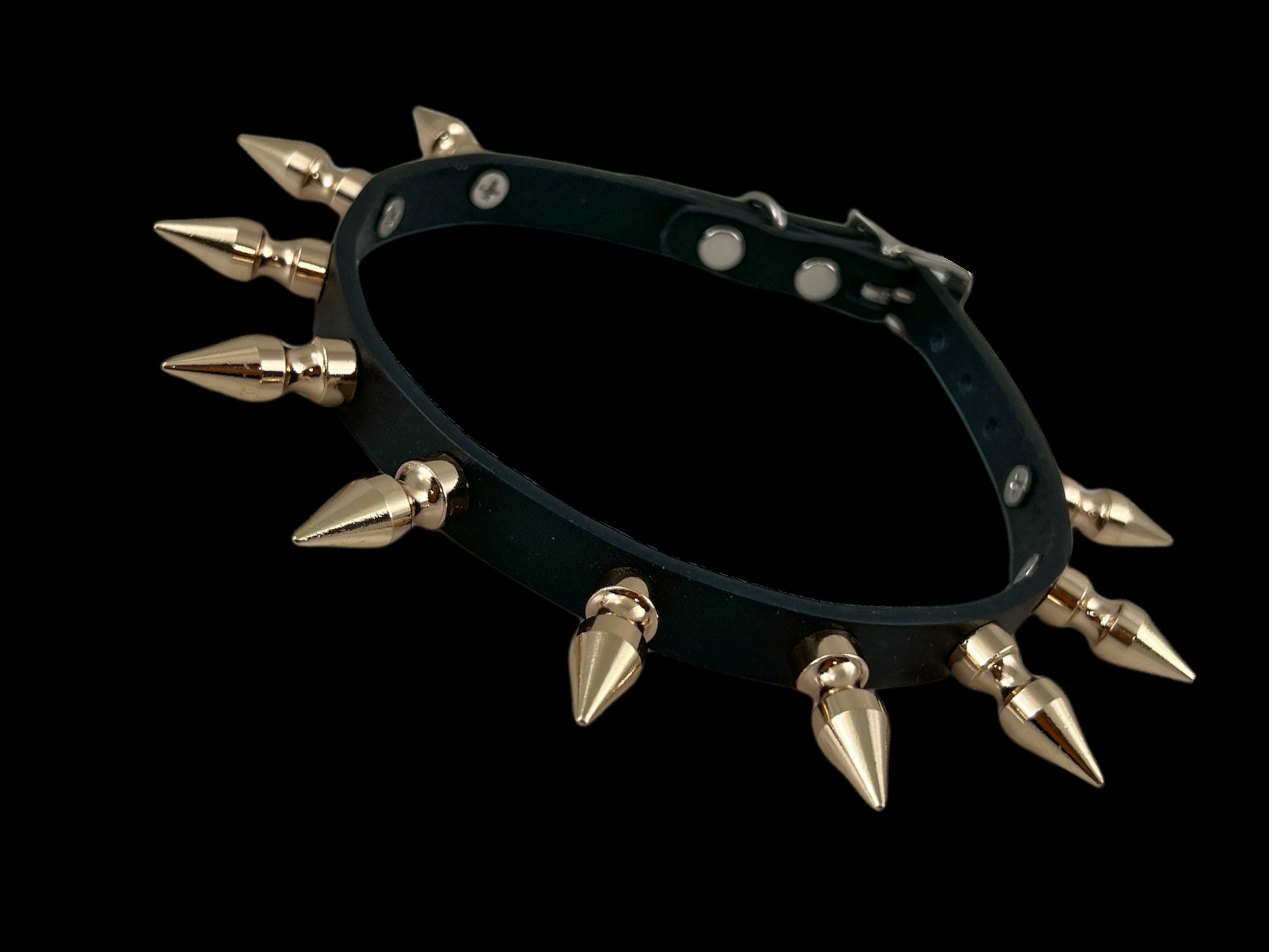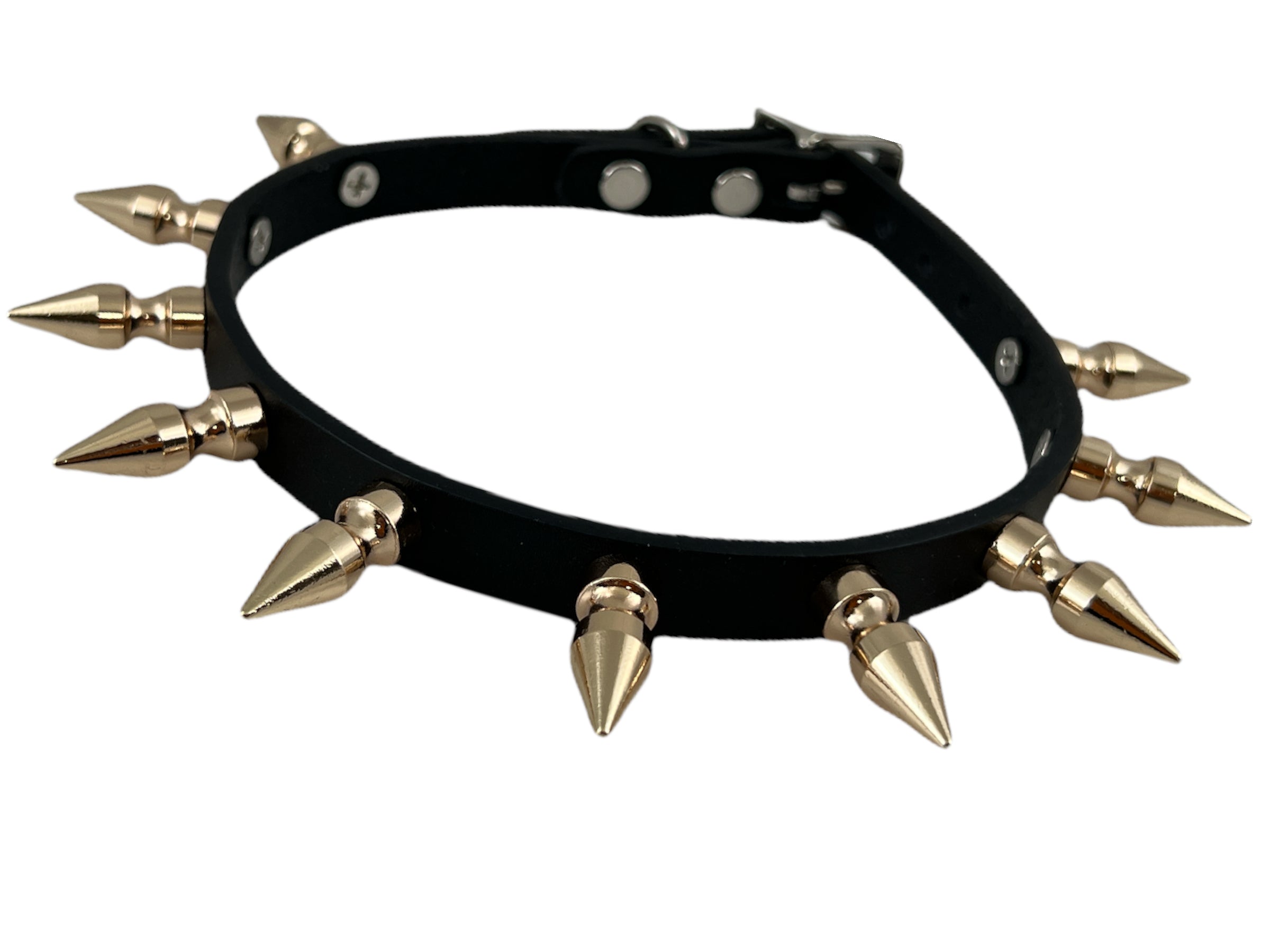 FCK324 1/2" SKINNY WIDE 1" SPIKE BLACK LEATHER CHOKER