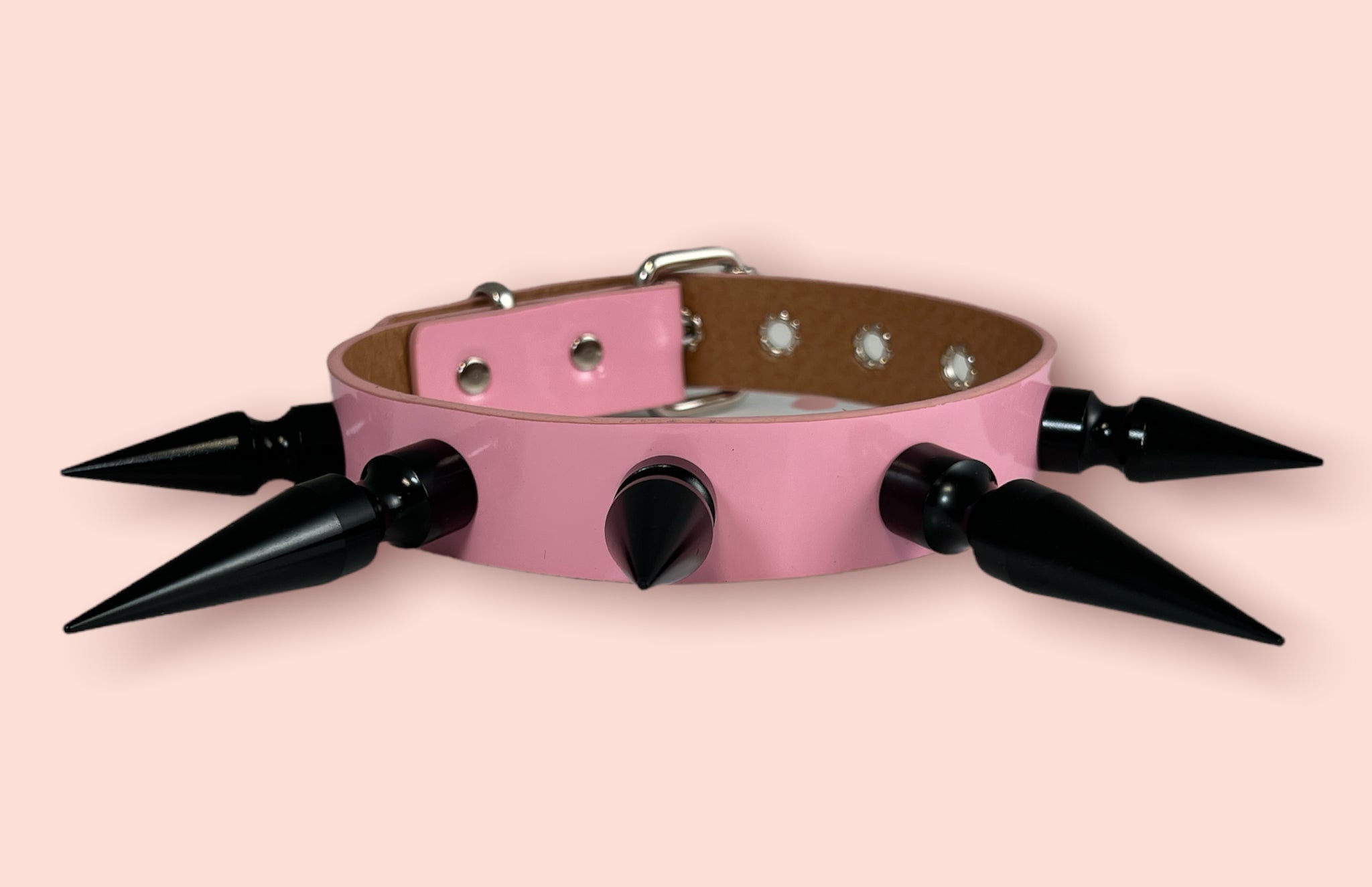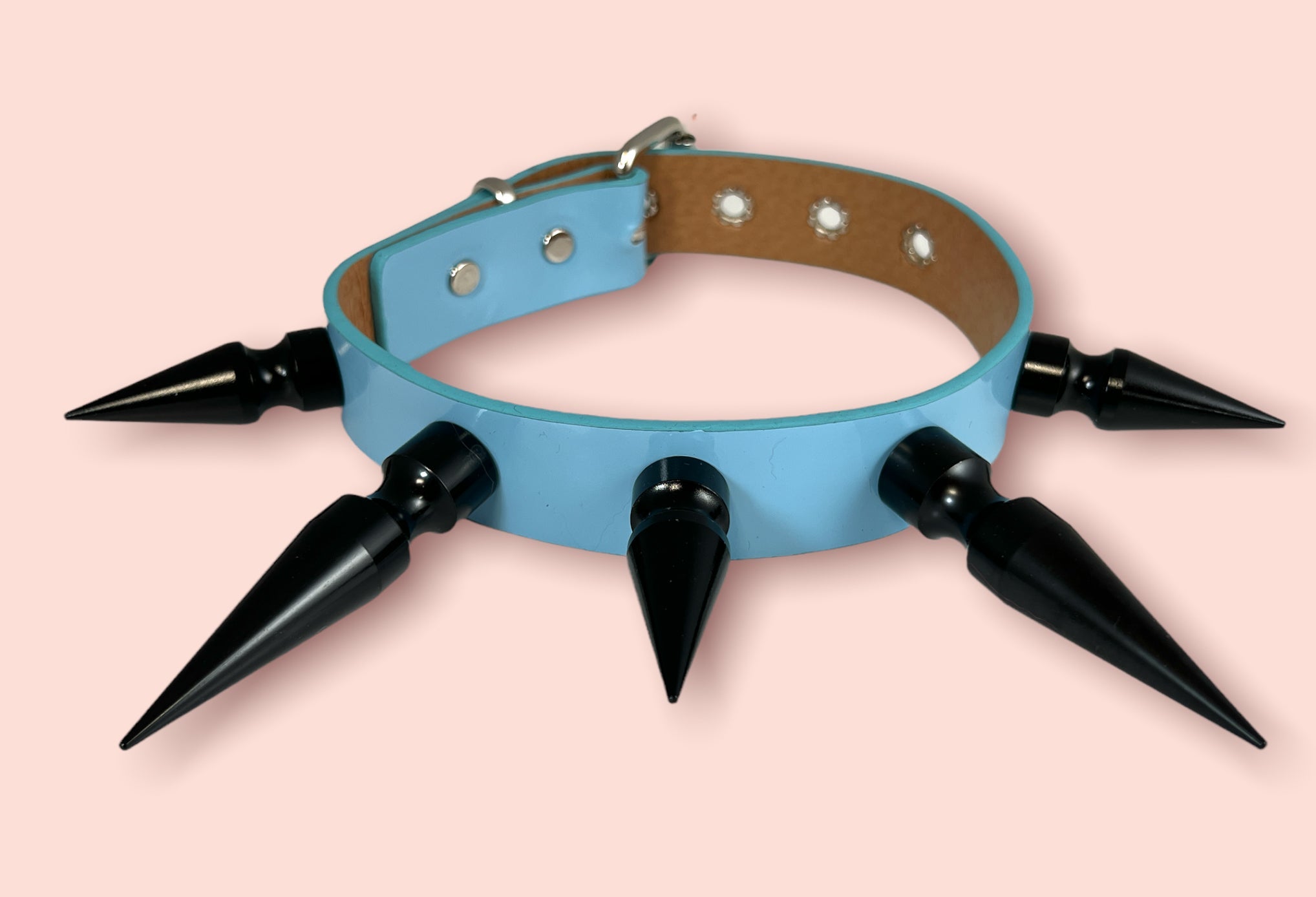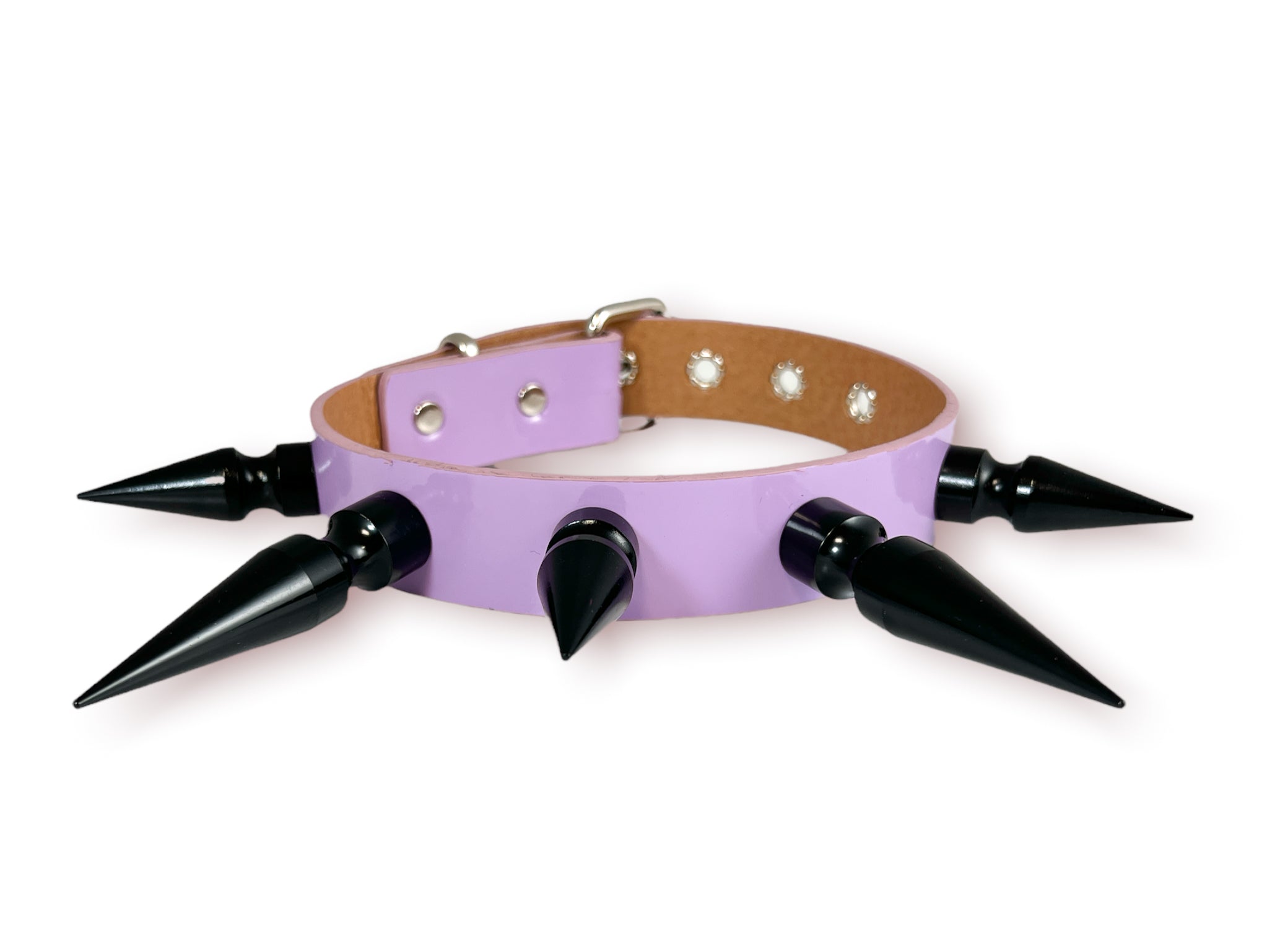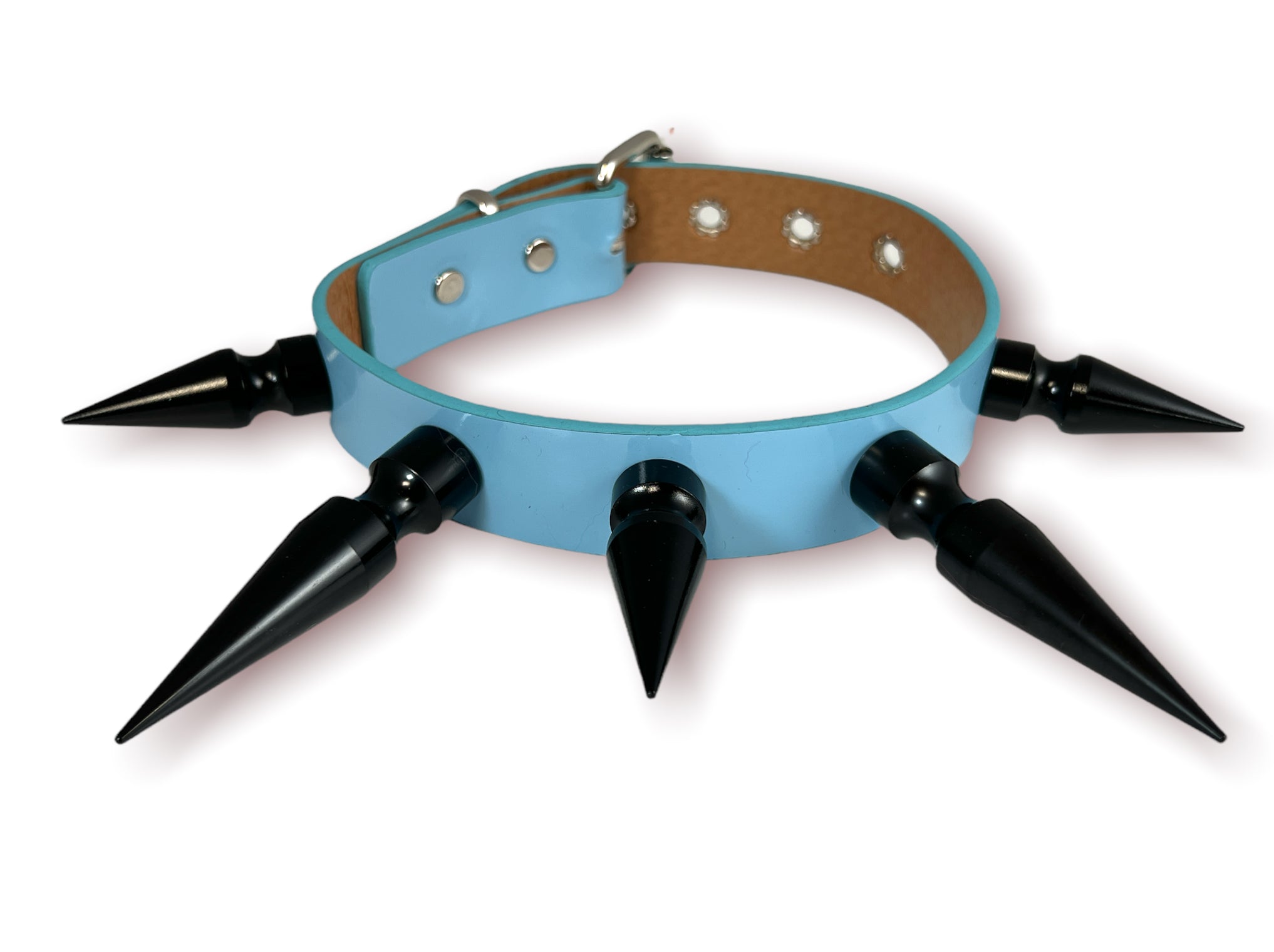 1 1/4" BLACK SHINY NEON PATENT CHOKER WITH 2" & 3" BLACK SPIKES Read more