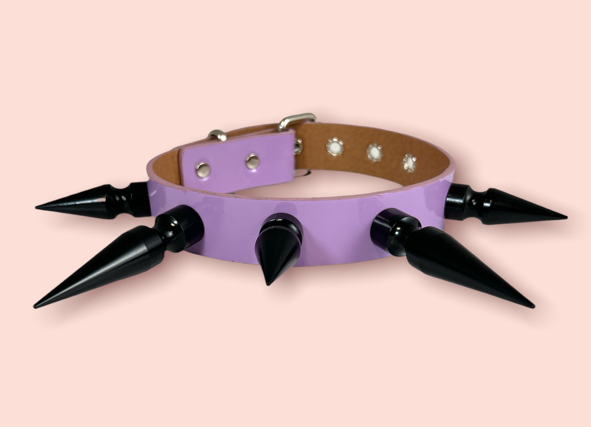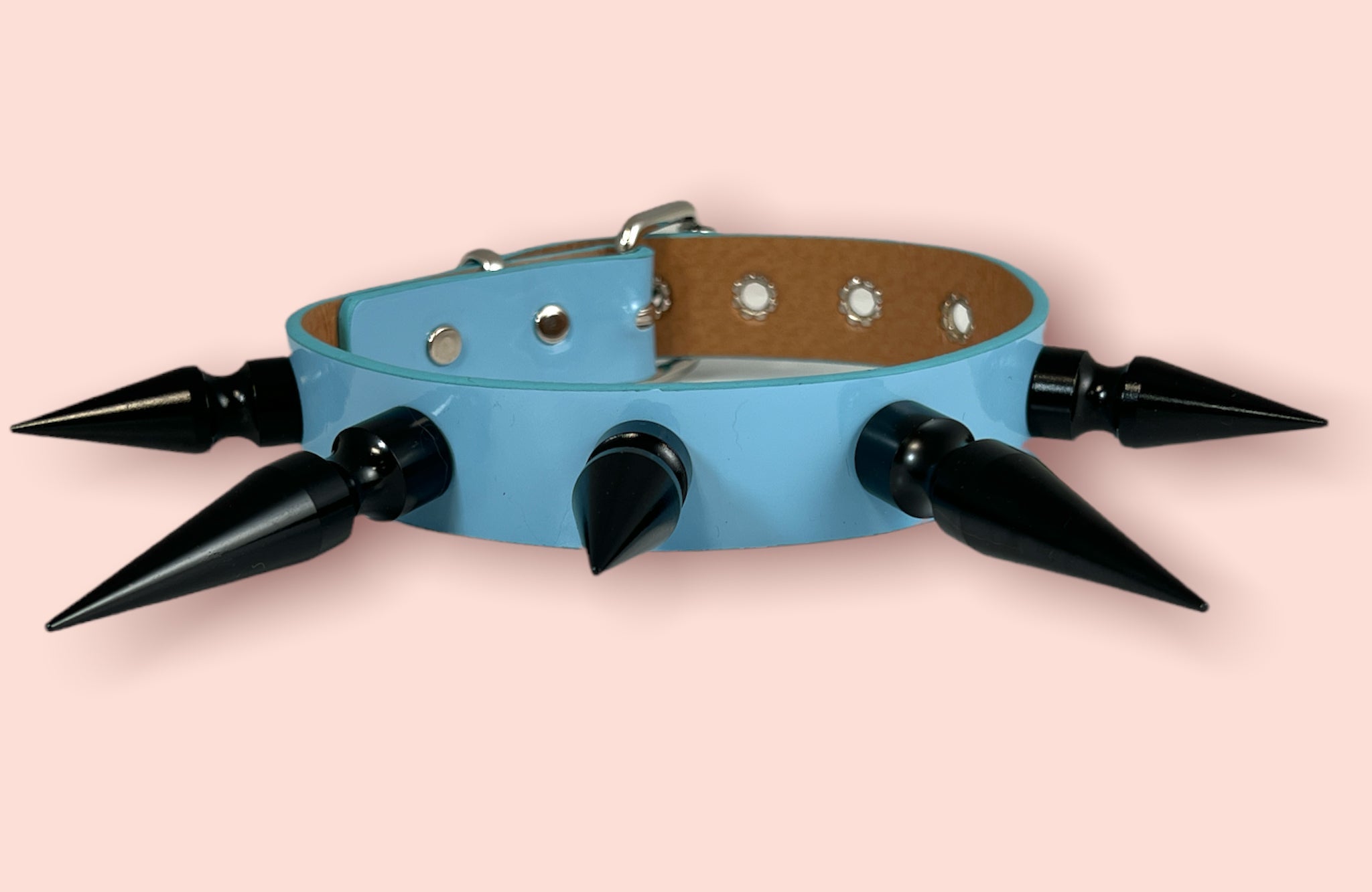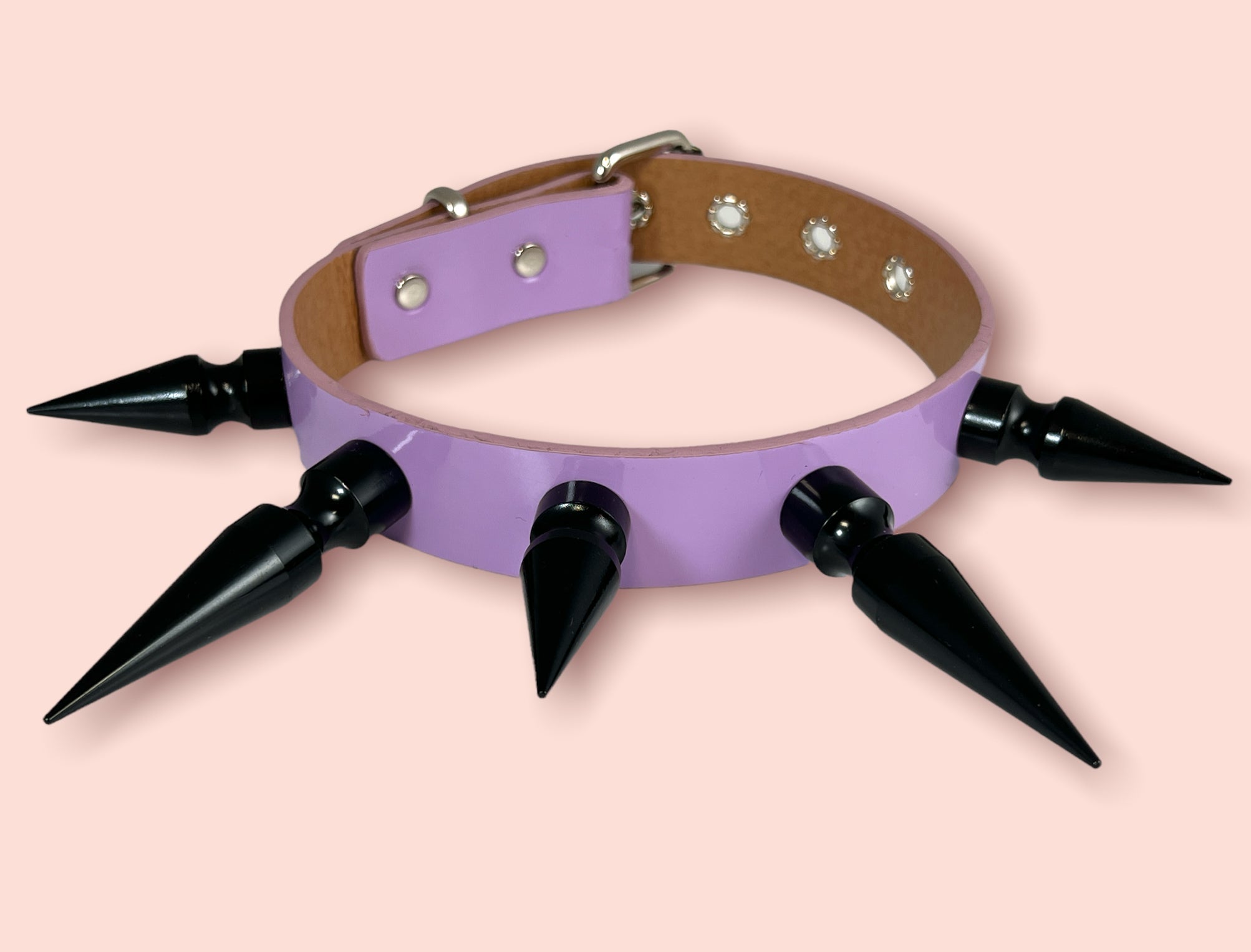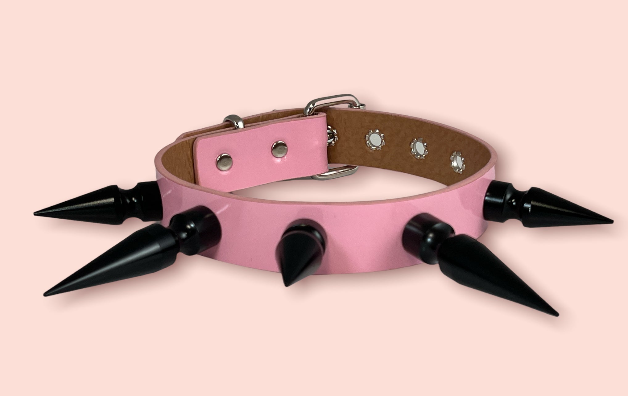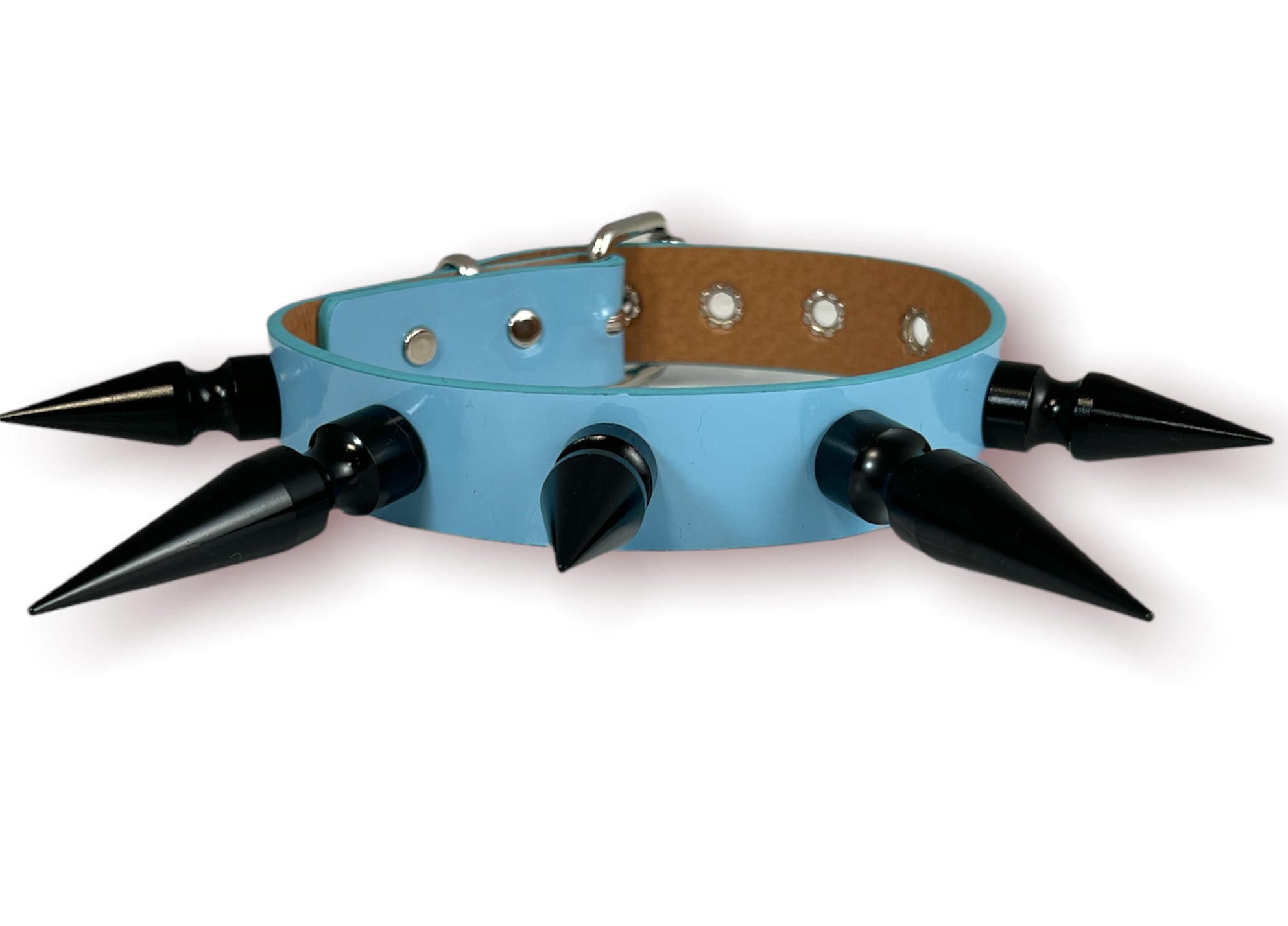 1 1/4" BLACK SHINY NEON PATENT CHOKER WITH 2" & 3" BLACK SPIKES Read more