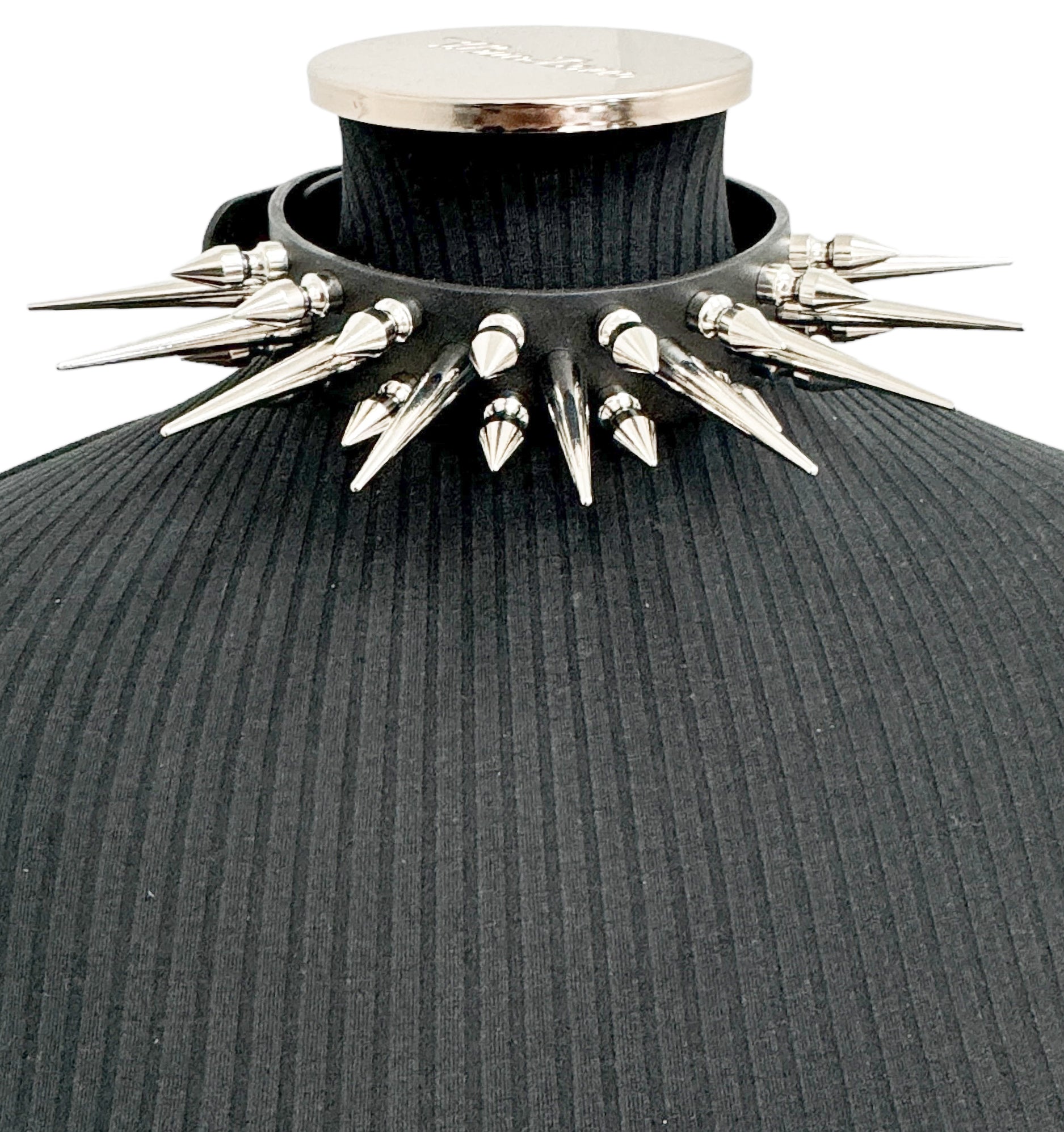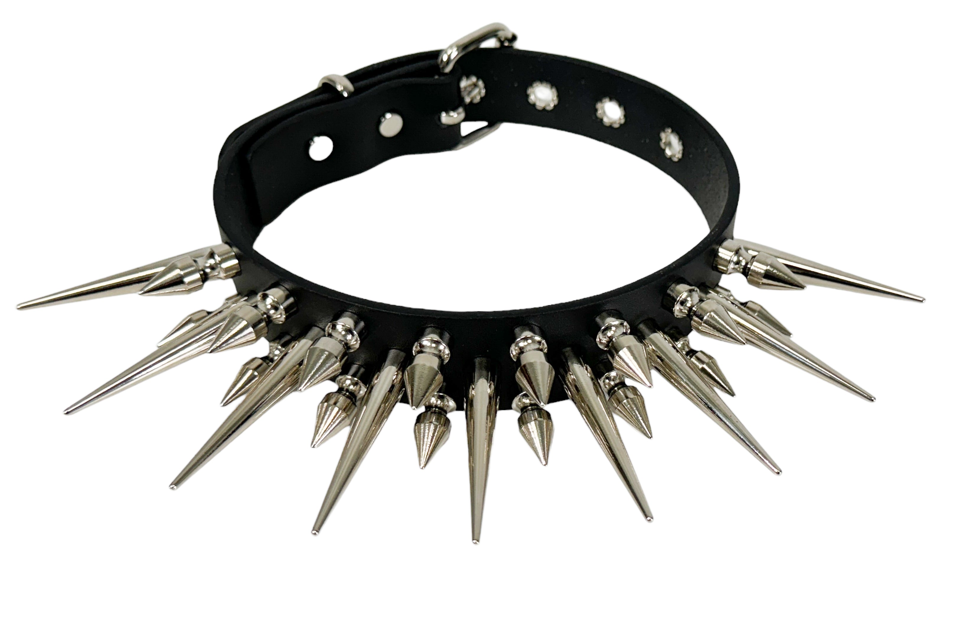 1 3/4" WIDE SPIKE CHOKER 1 ROW LARGE CONE SPIKE IN MIDDLE 2 ROW 1"SPIKE ON THE SIDE HARDCORE PUNK... Read more