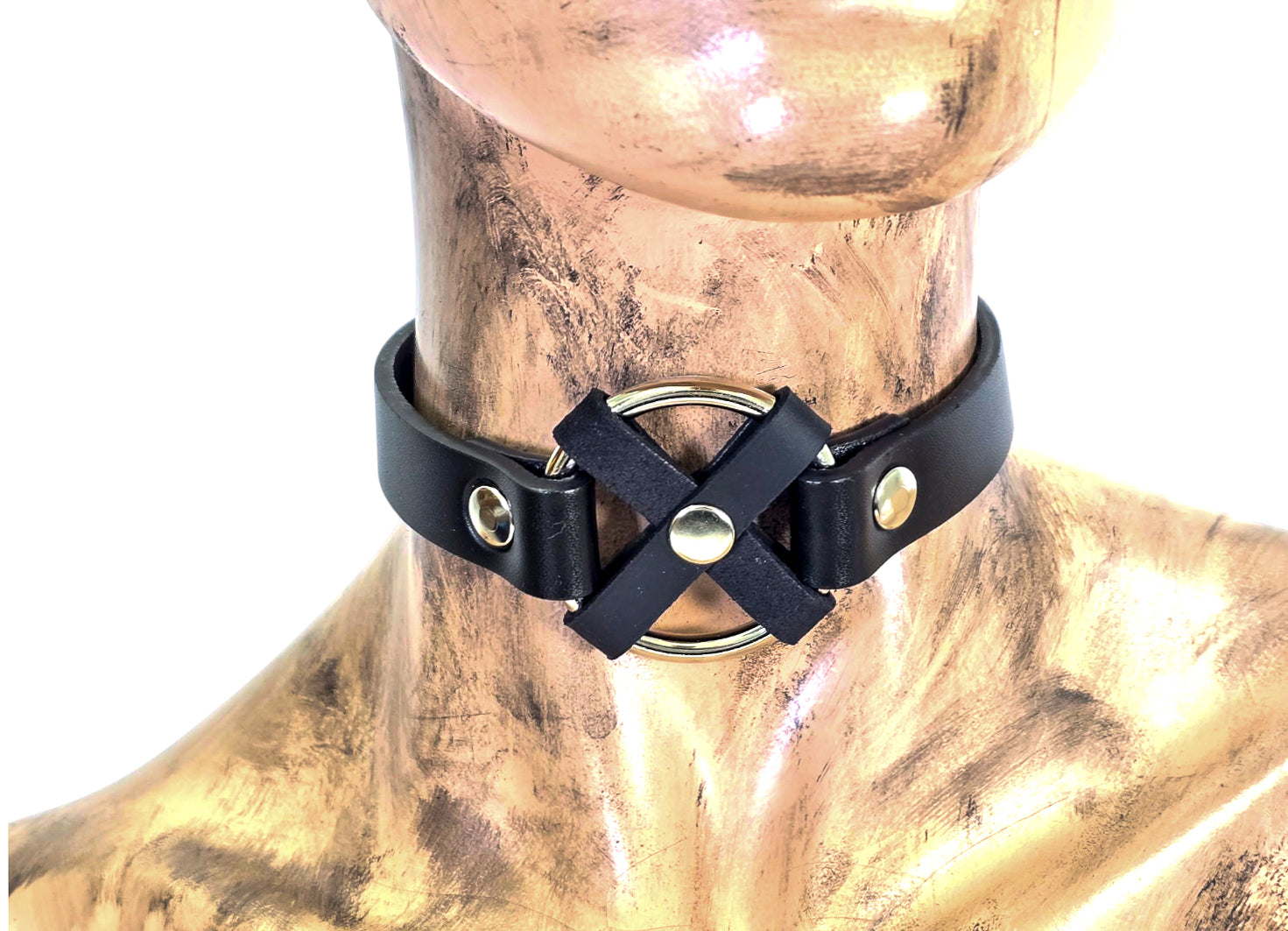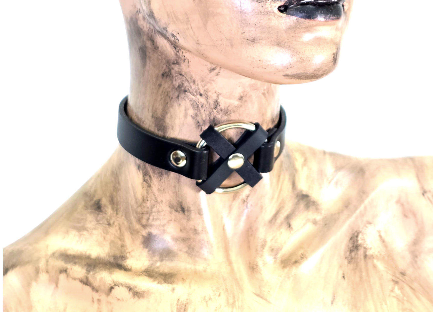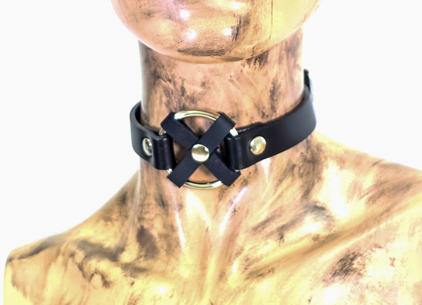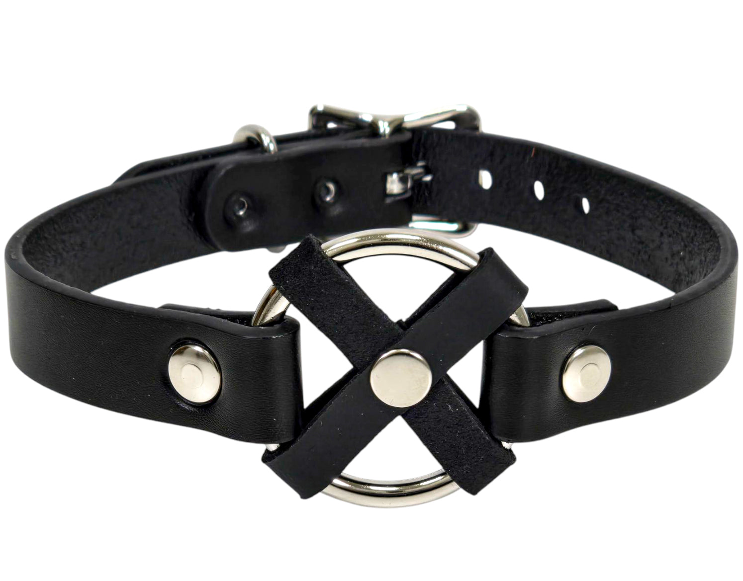 FCK675 MIDDLE O RING CROSS BLACK 3/4" LEATHER BUCKLE CHOKER
