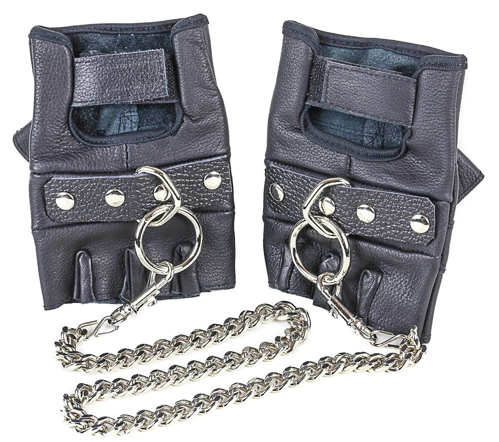 HC125 FINGERLESS GLOVE LEATHER HANDCUFF LEASH