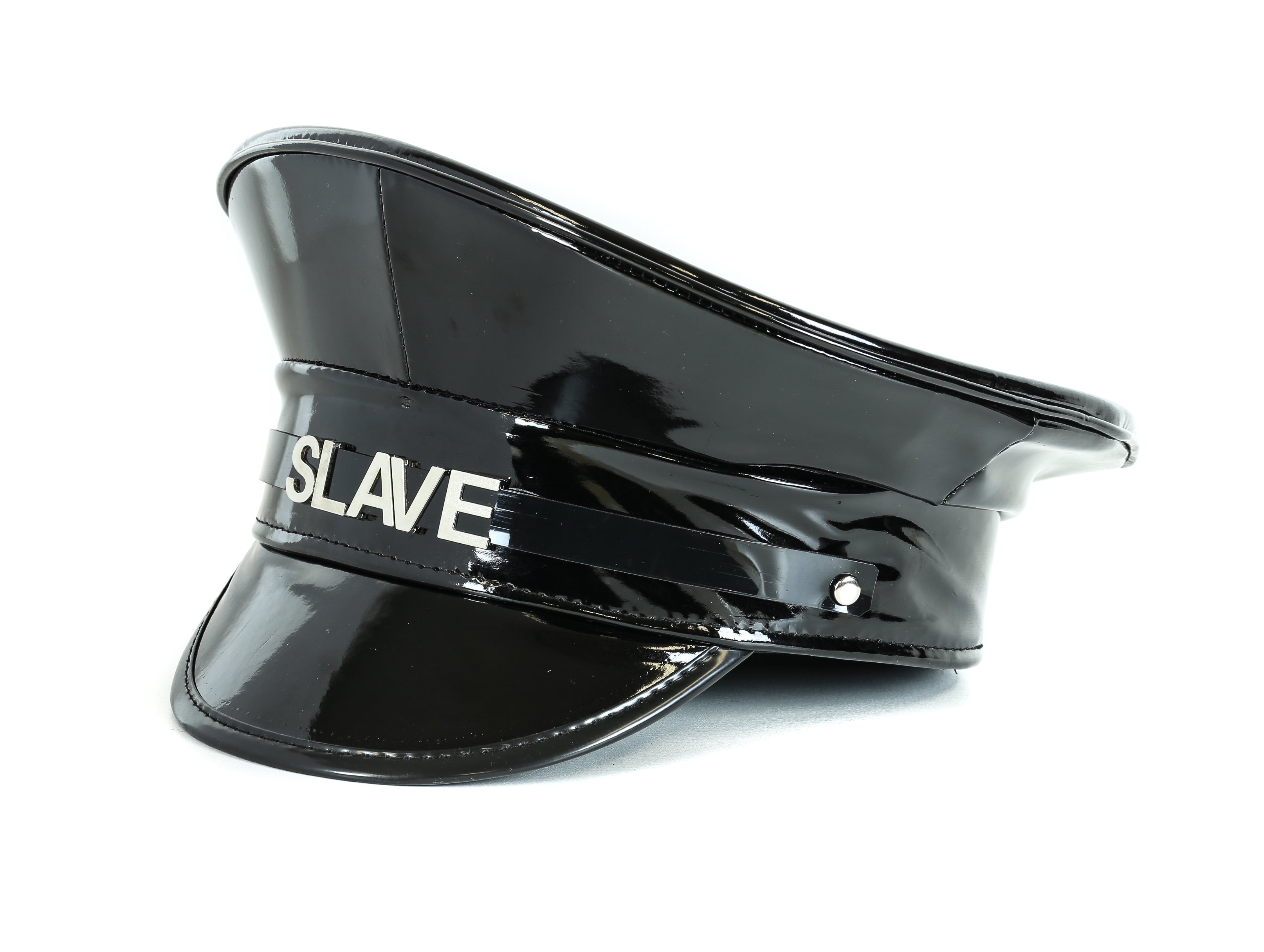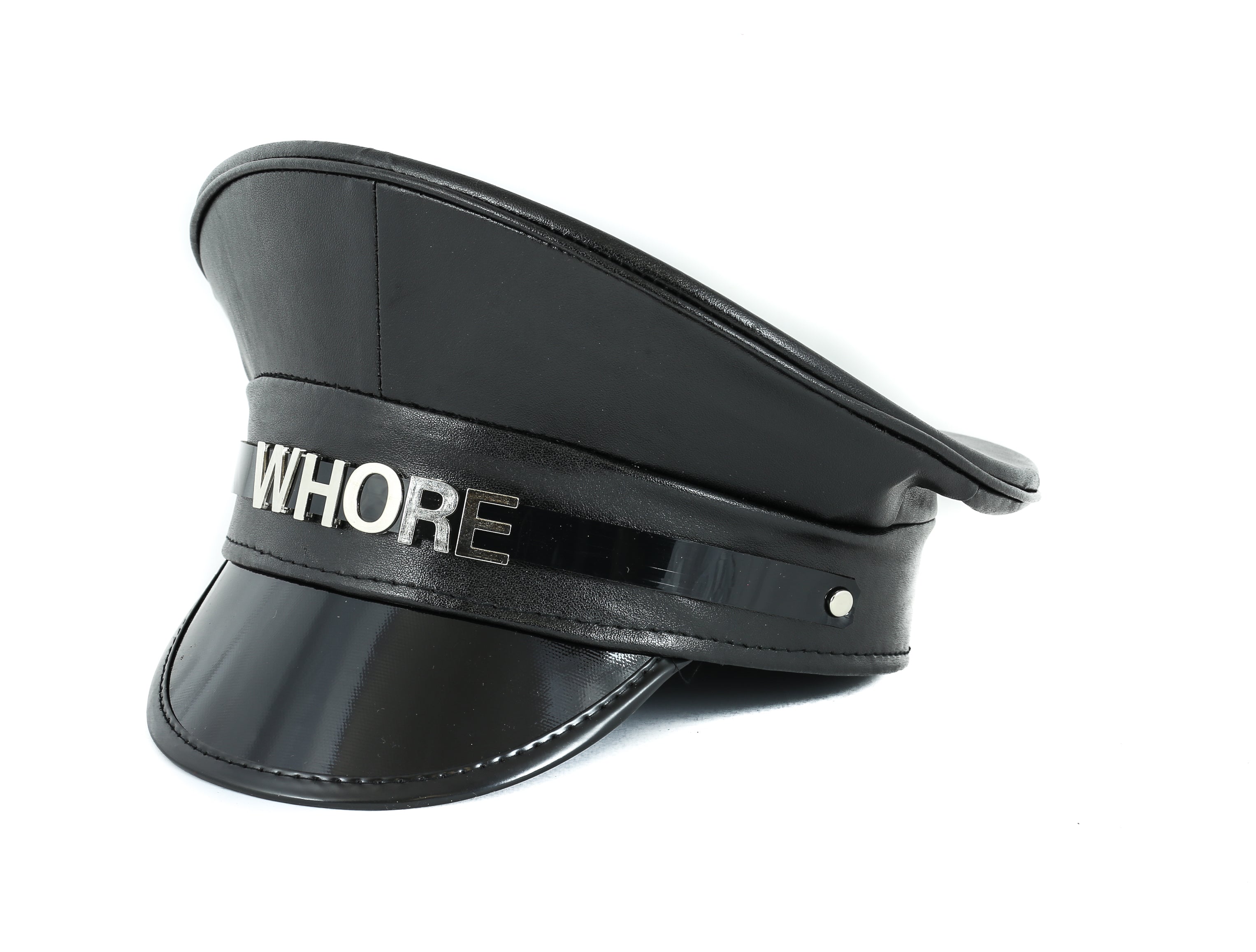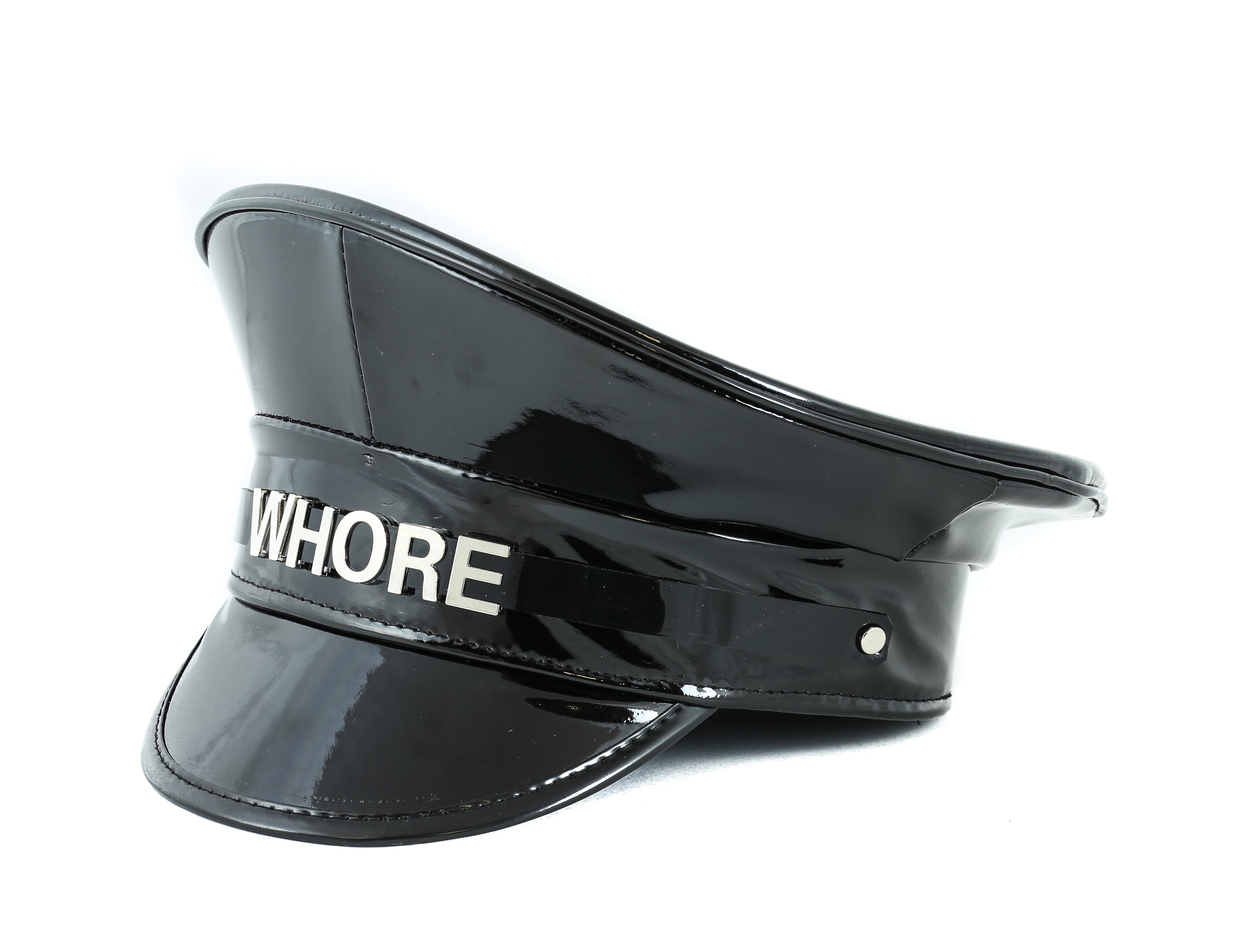 HT233P.BLK NAME PATENT CAPTAIN HAT WHORE SLAVE SLUT