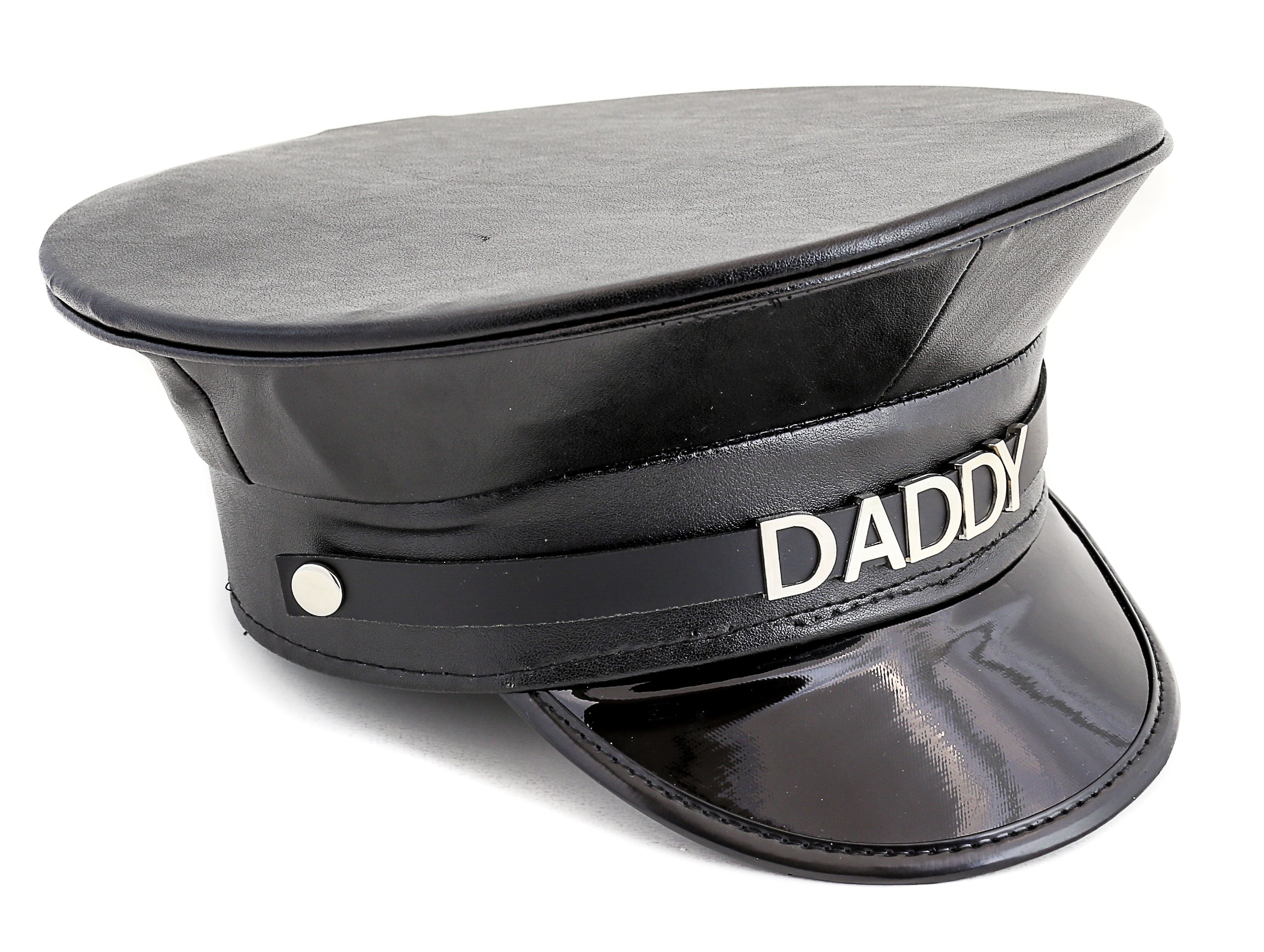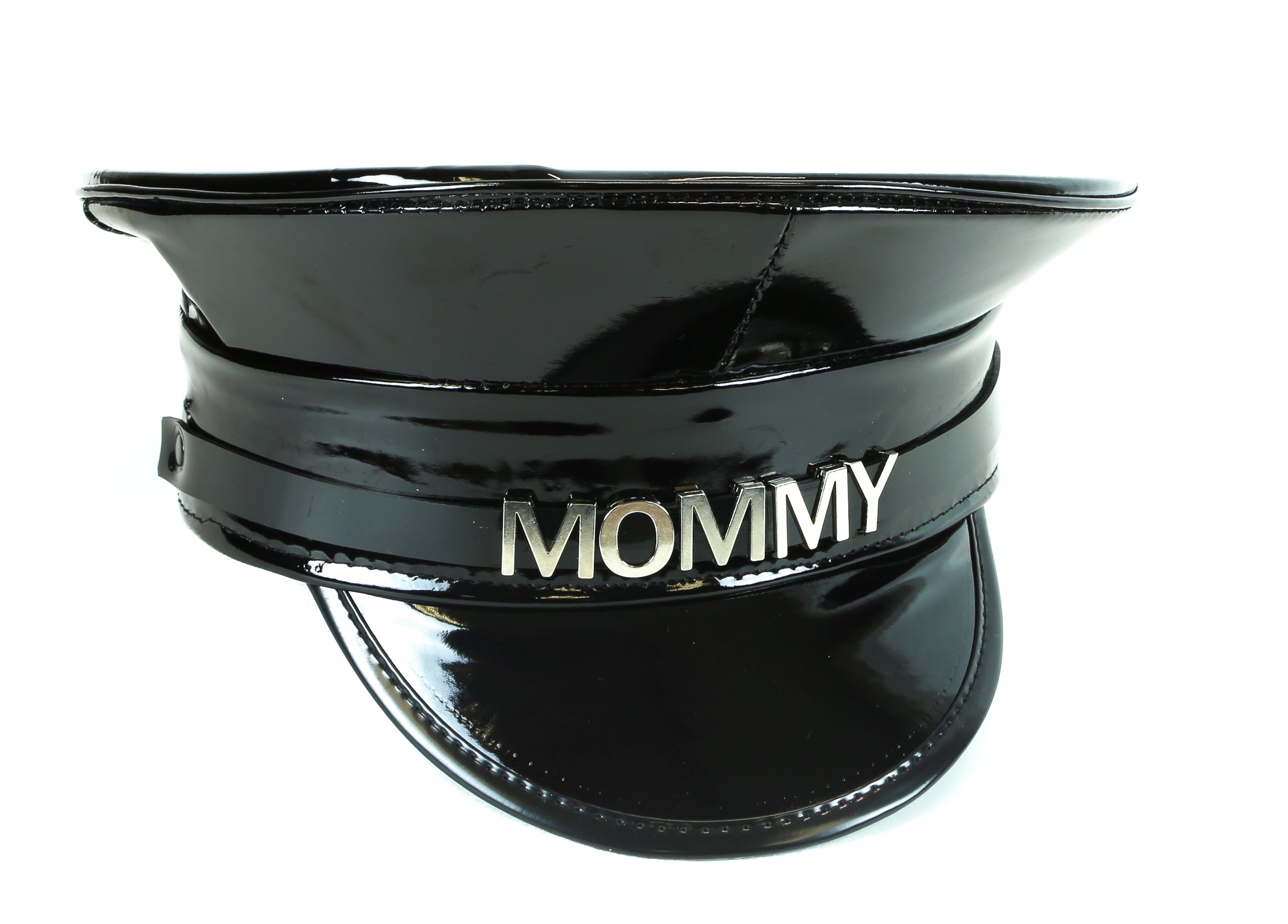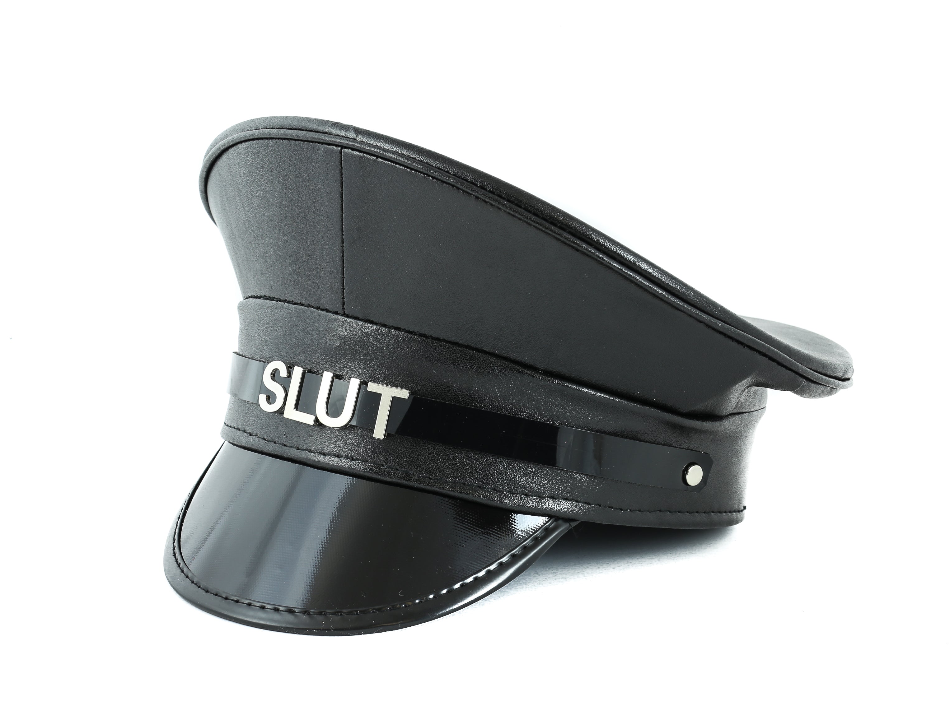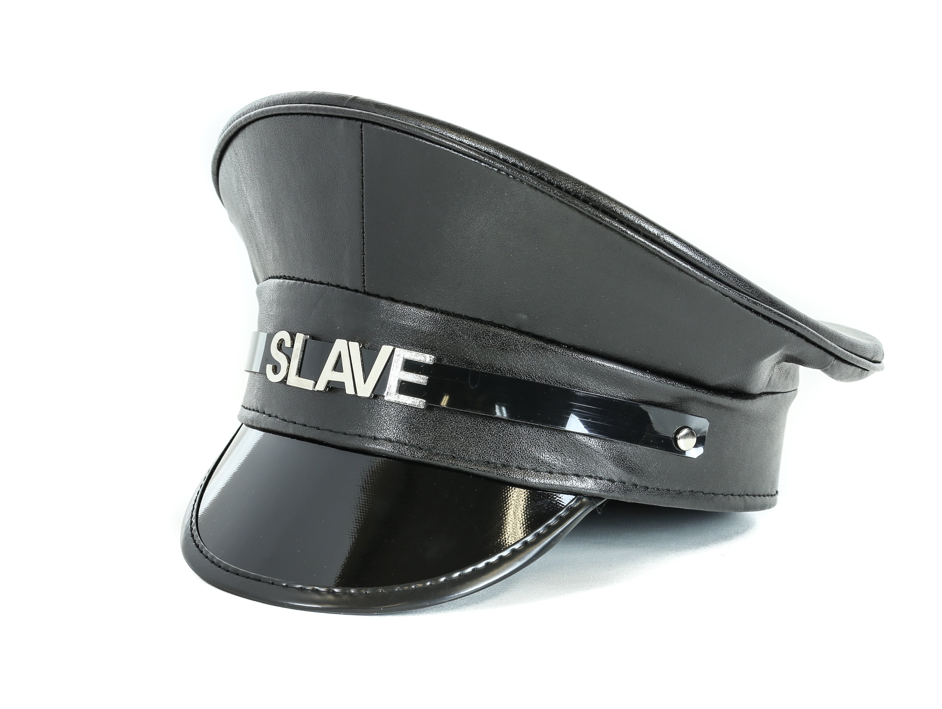 HT233P.BLK NAME PATENT CAPTAIN HAT WHORE SLAVE SLUT