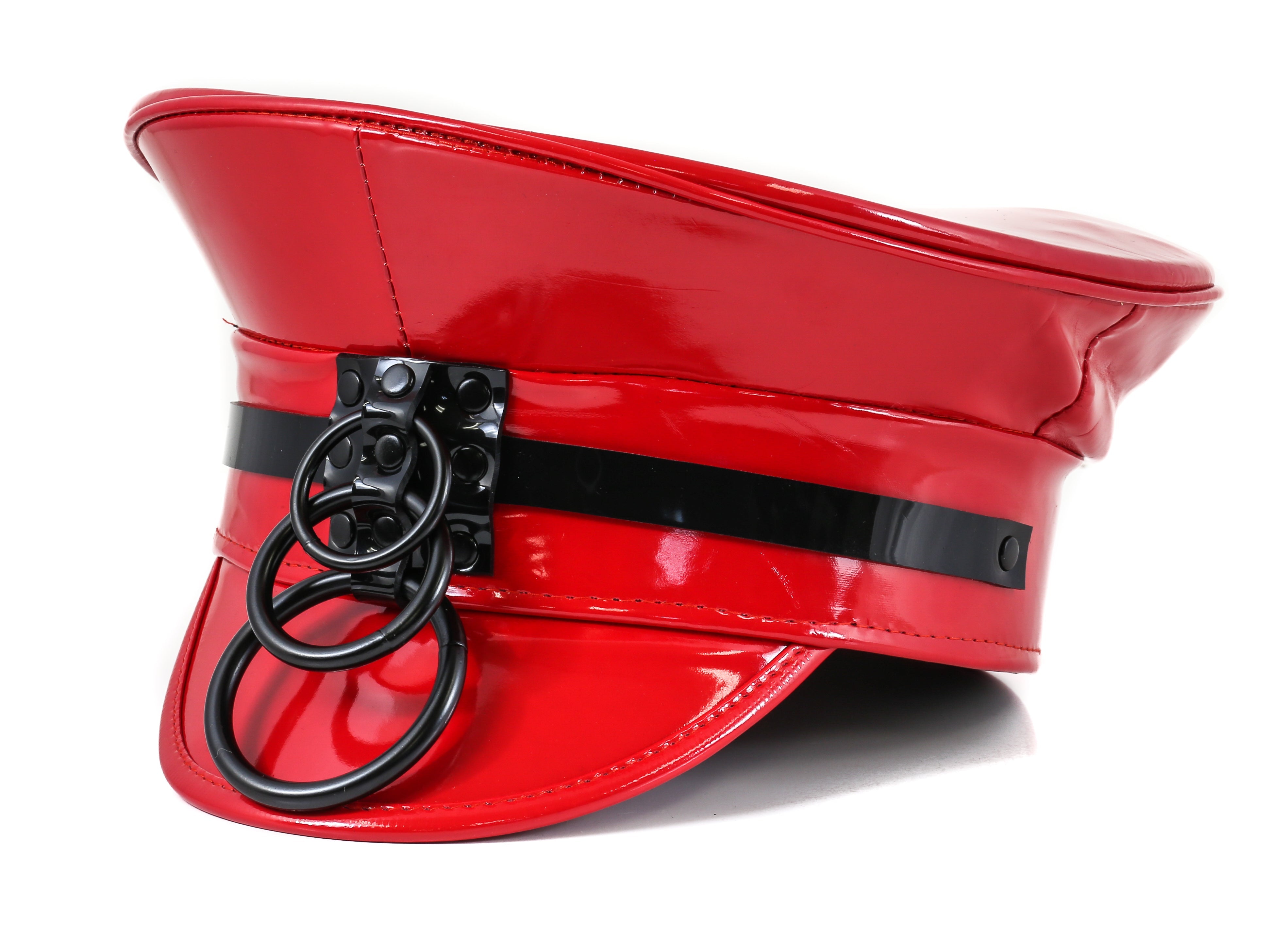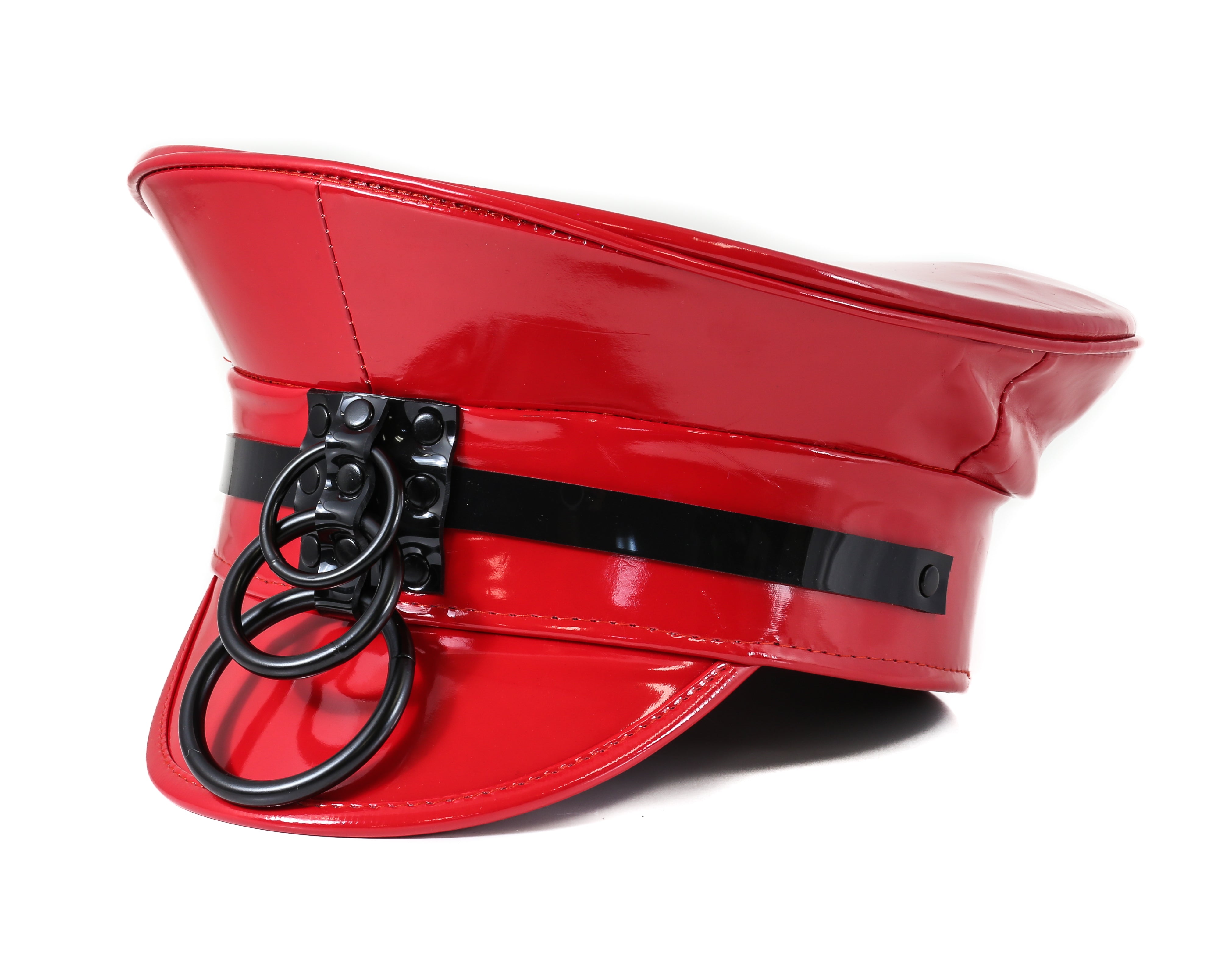 HT242P.RED 3 RING RED PATENT BLACK STRAP CAPTAIN HAT