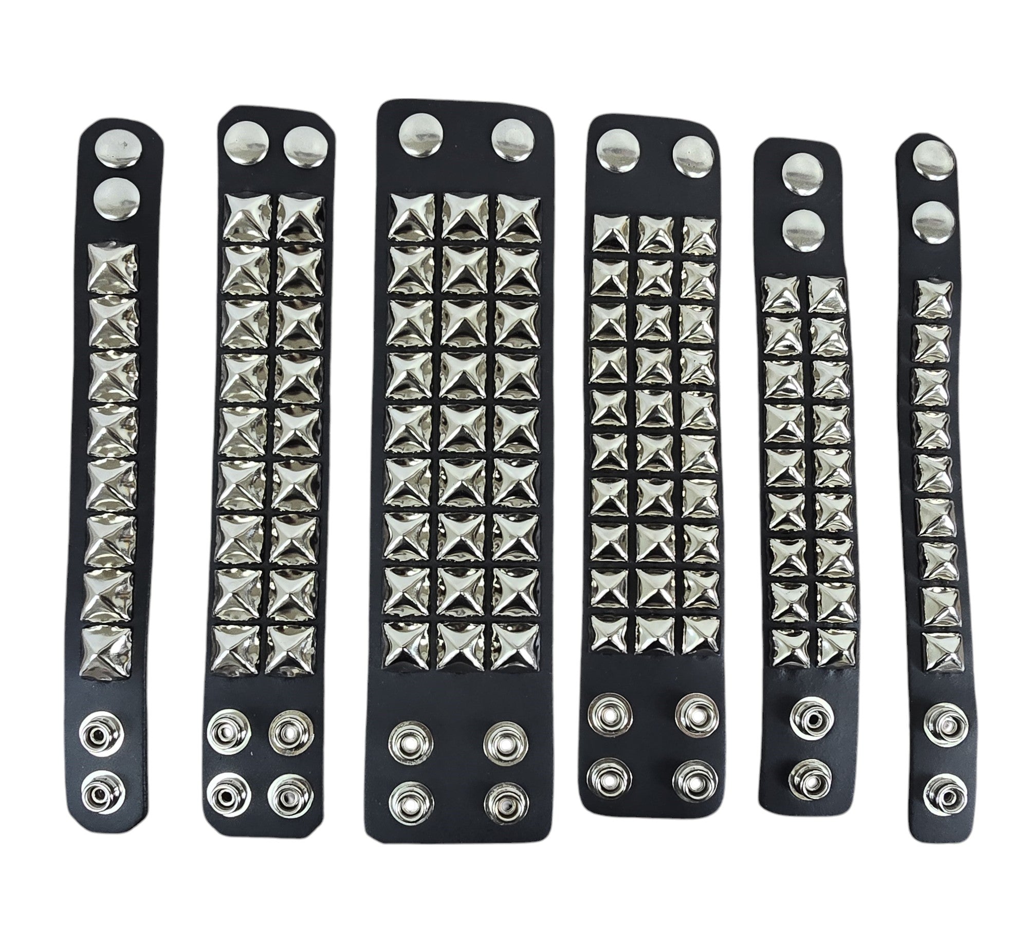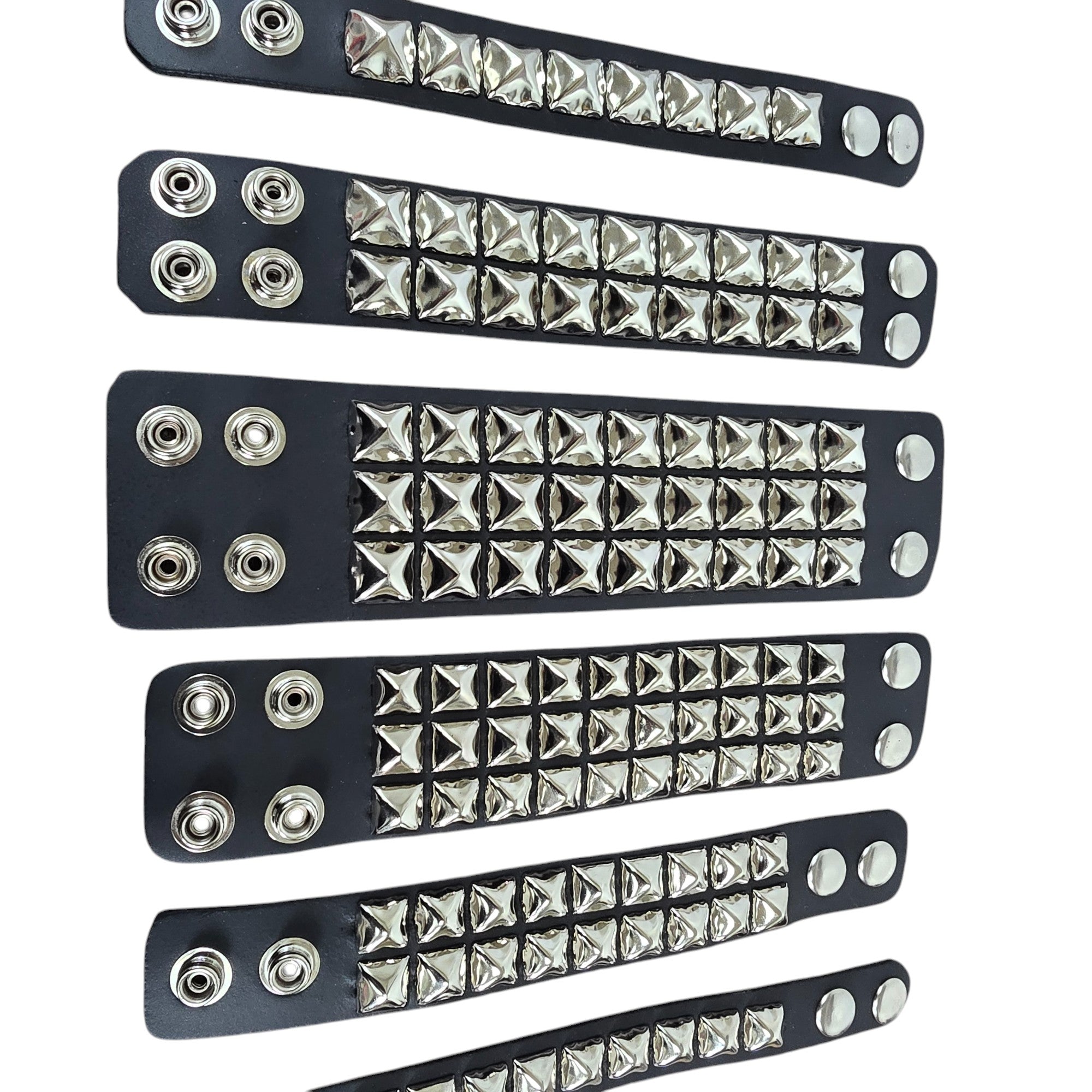 PYRAMID STUDDED LEATHER SNAP BRACELET