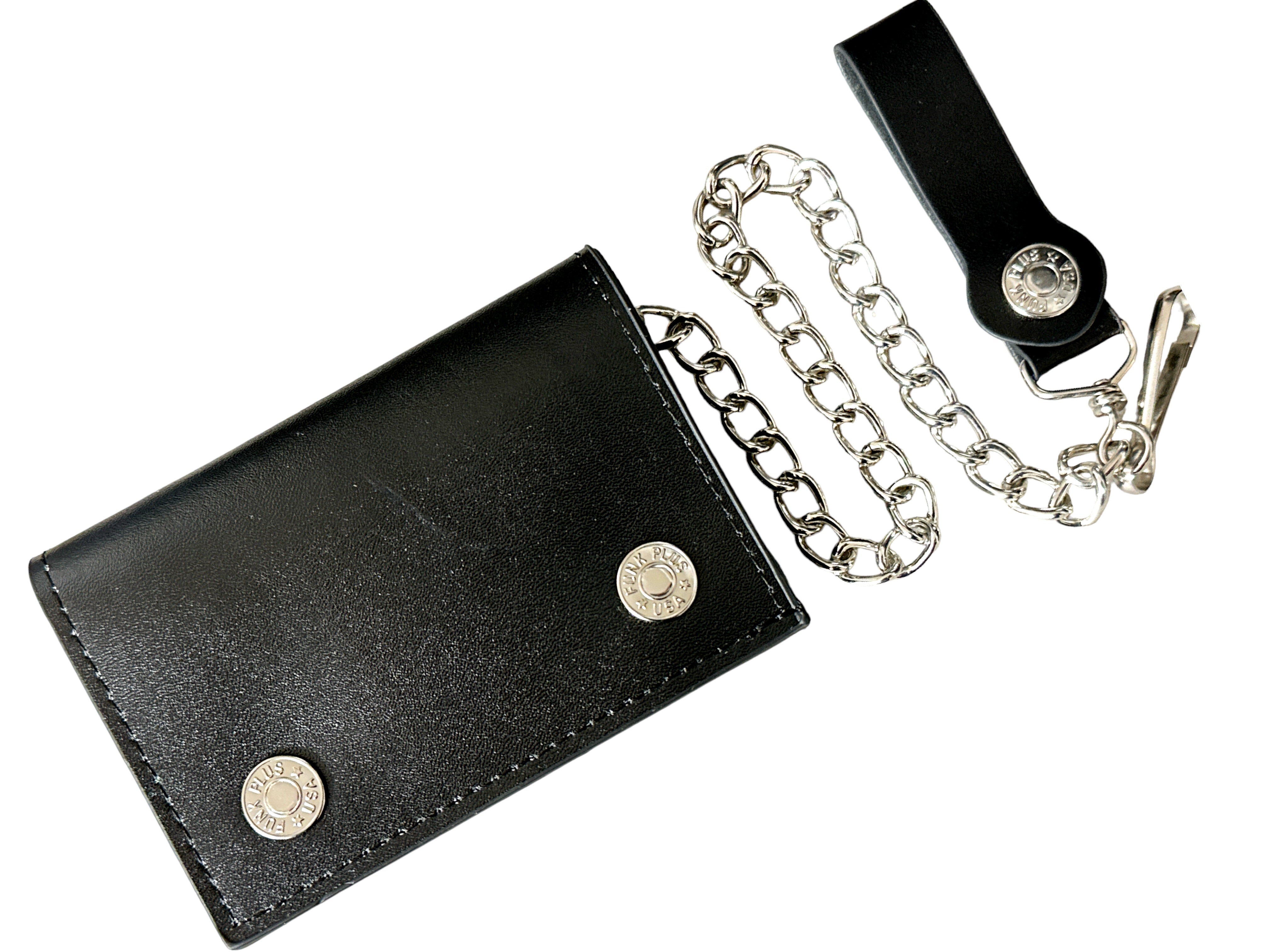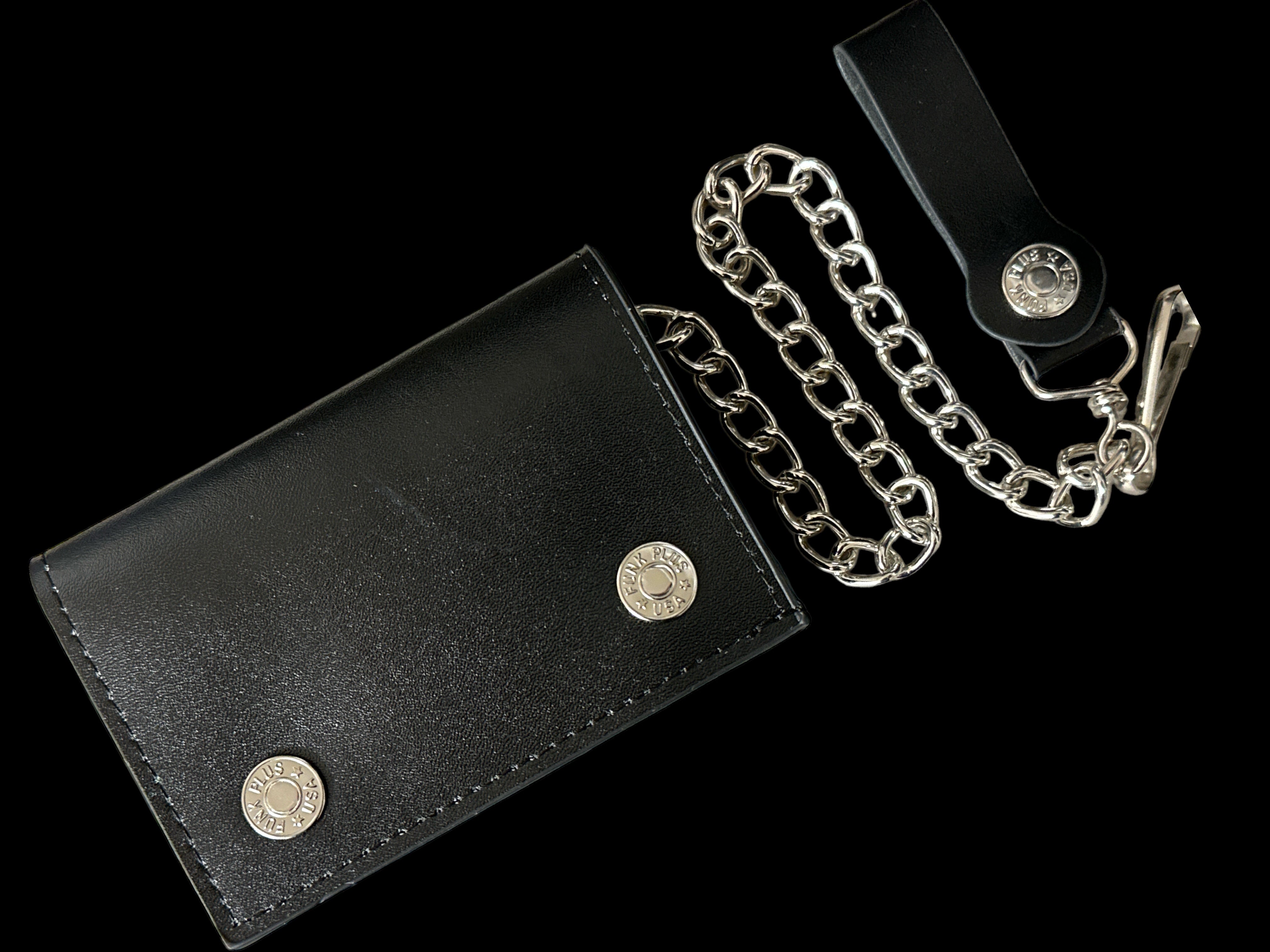 TRIFOLD BIKER WALLET DOUBLE SNAP 12" CHAIN WITH SNAPPED LOOP HOLDER FOLDED: 4 3/4" X 3 ½” OPEN: 9 3/4"... Read more