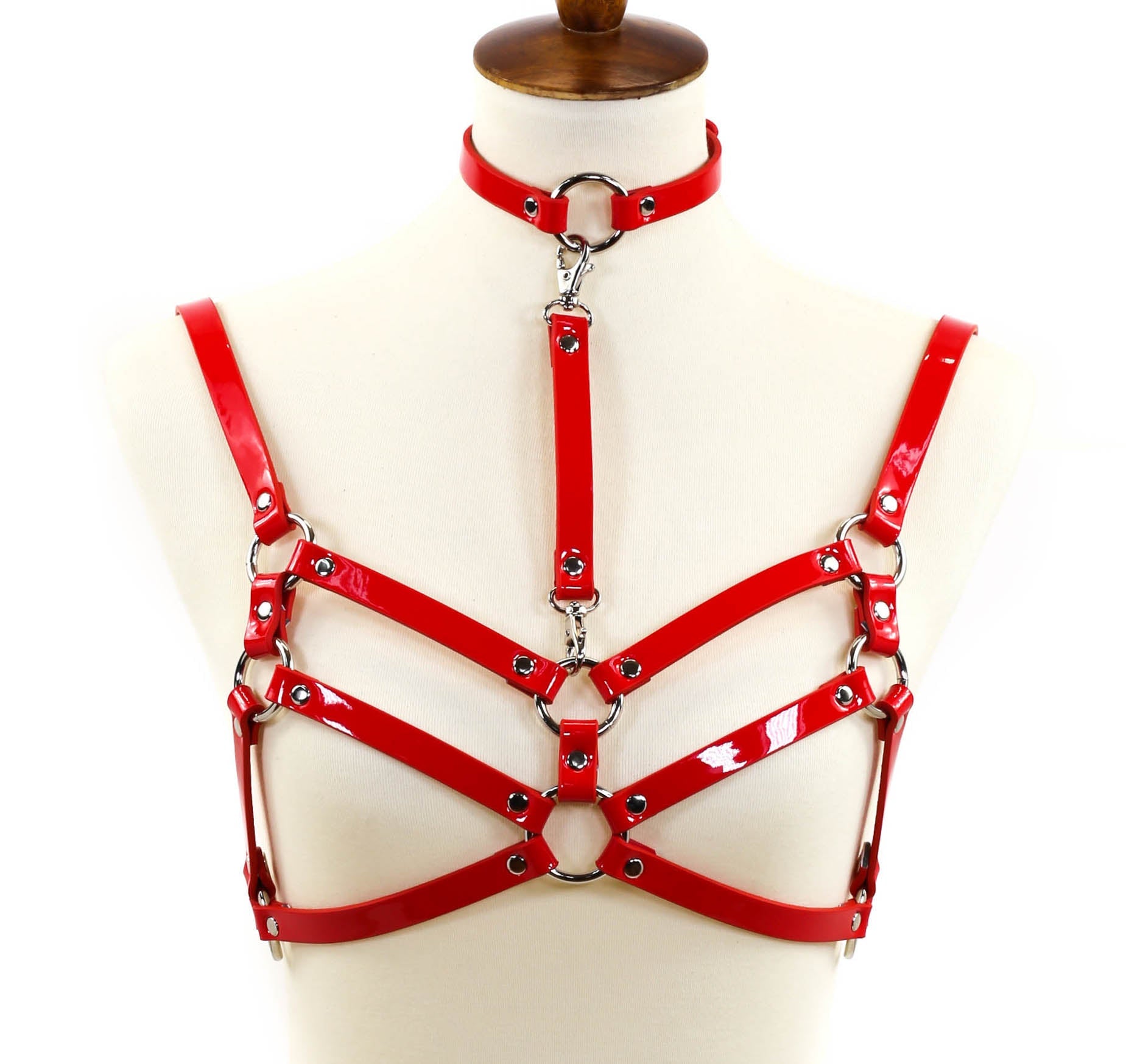 DOUBLE STRAP BRA HARNESS WITH CHOKER ASSORTED PATENT Read more
